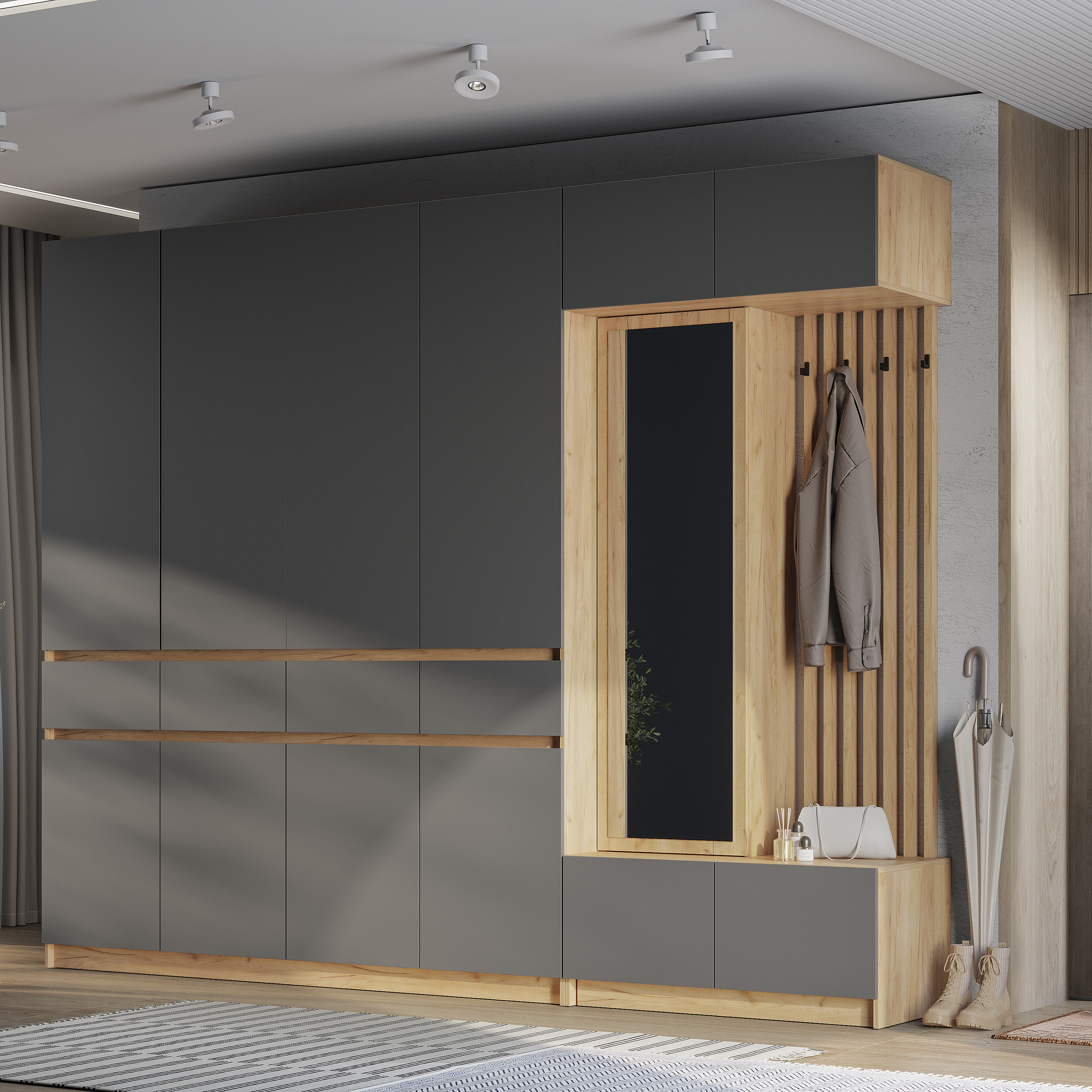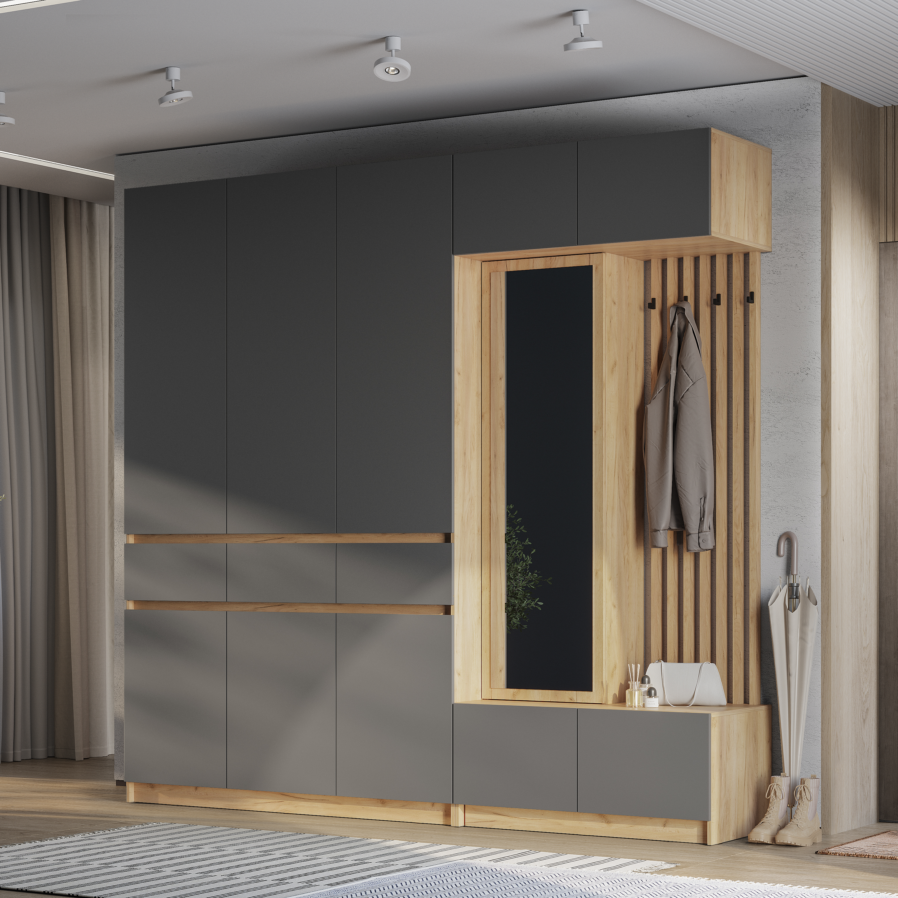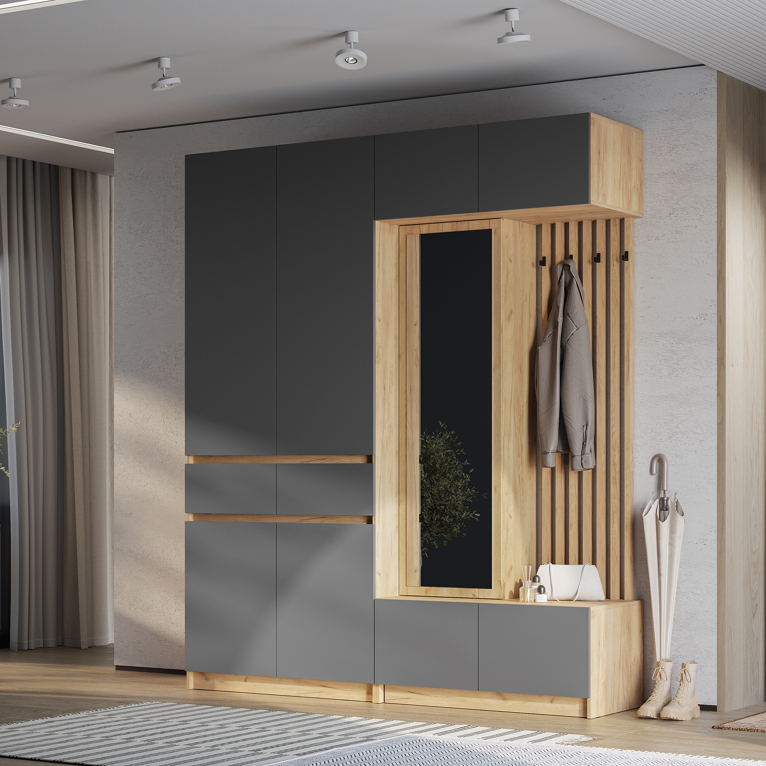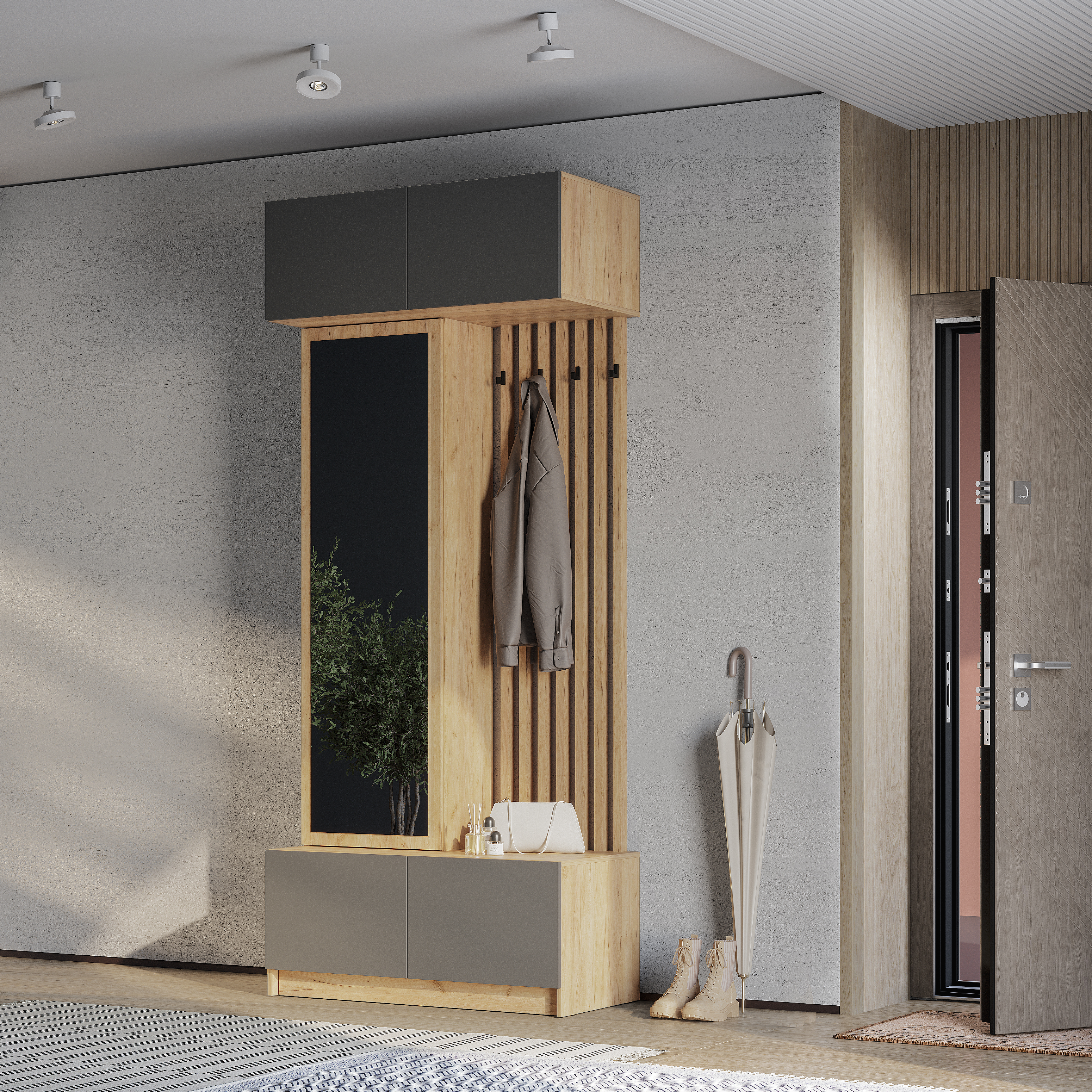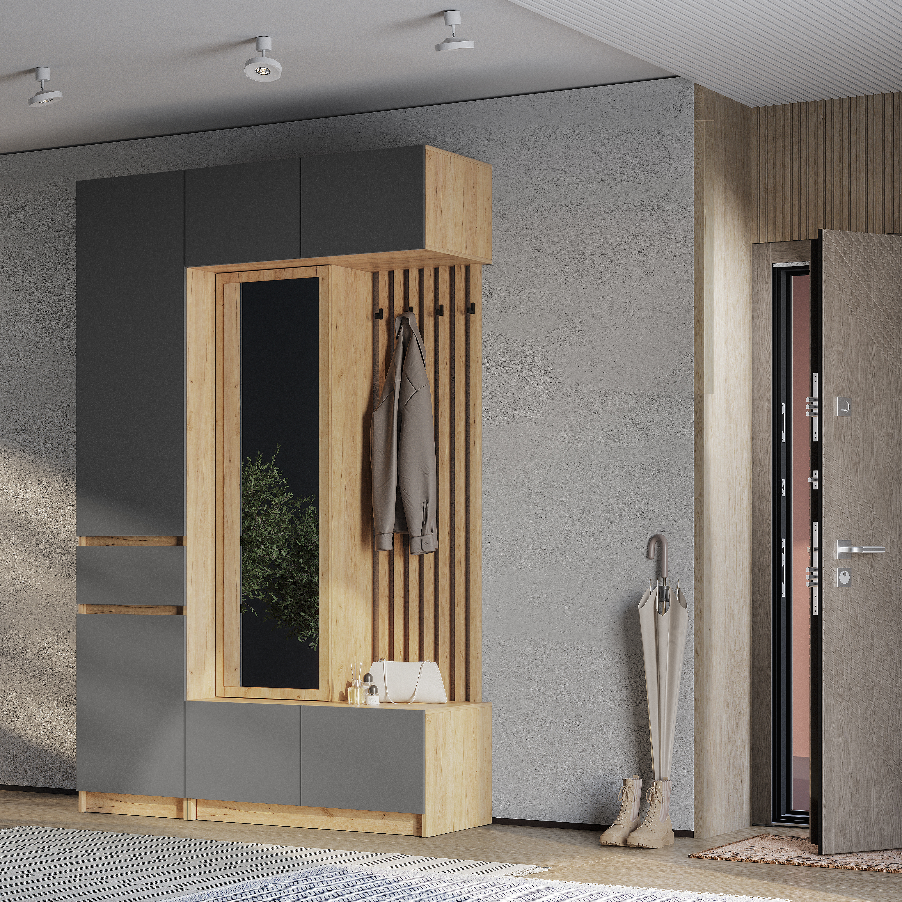 Новинка: модульная прихожая "Багира" в цвете "дуб крафт золотой/графит"