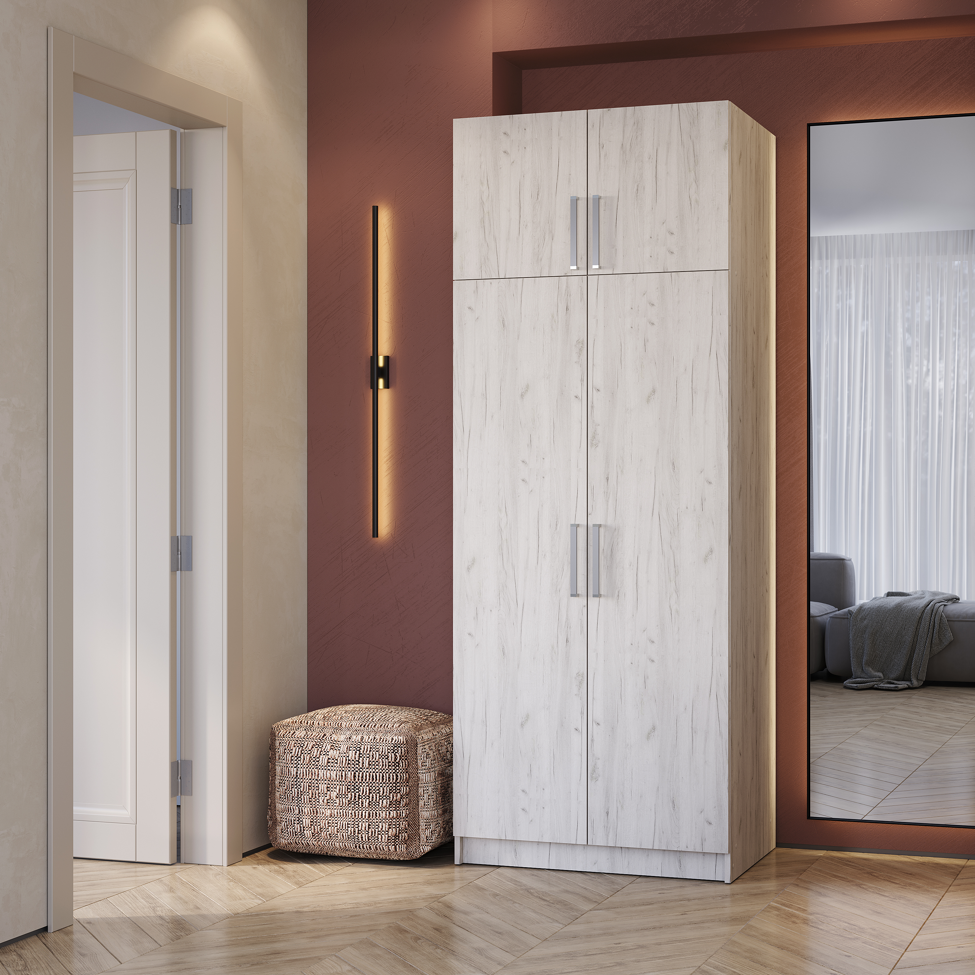 Шкаф 2-х створчатый с перегородкой в цвете "дуб крафт белый"