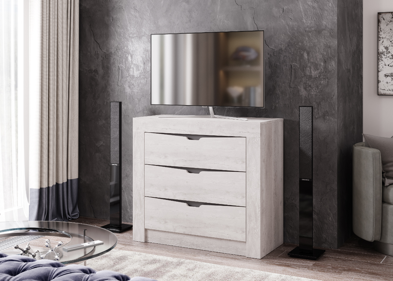 Элегантный комод «Леонардо» можно использовать как отдельно, так и в коллекции спального гарнитура. Удобная система хранения для одежды, пастельных принадлежностей или других хозяйственных аксессуаров состоит из трёх вместительных выдвижных ящиков на шариковых направляющих, которые обеспечивают легкую и бесшумную эксплуатацию модели.