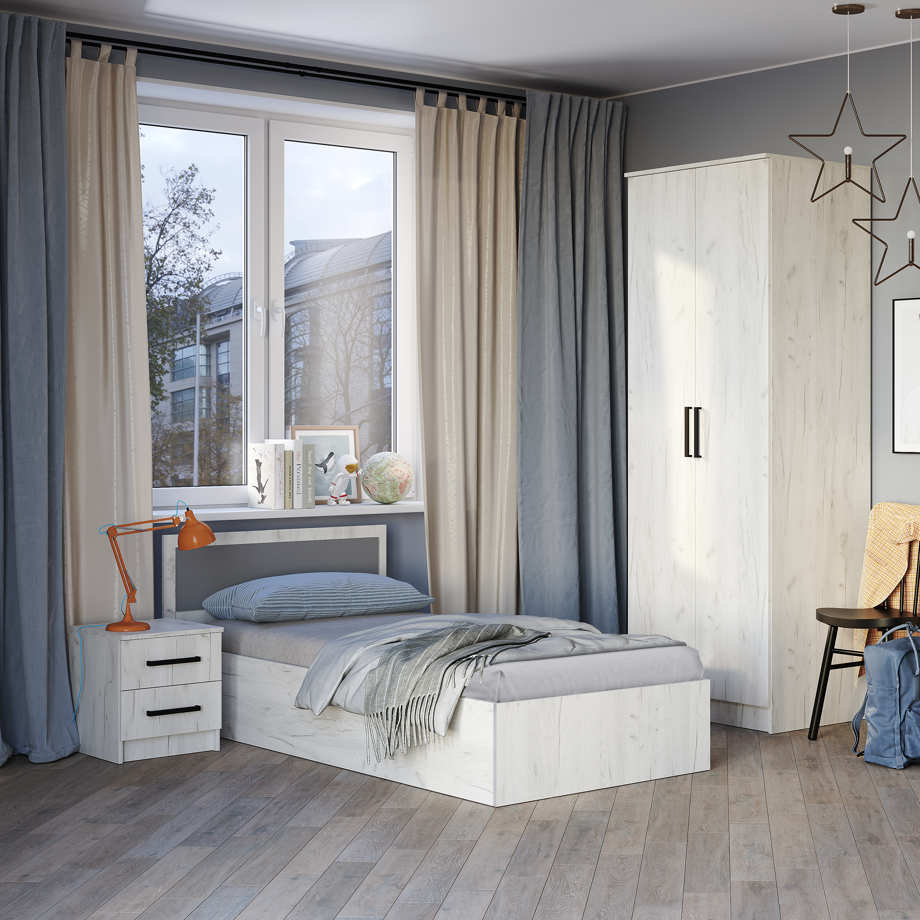 Коллекция «Фиеста» - это стильная и универсальная коллекция мебели, которая включает в себя все необходимые предметы для обустройства комнаты. Светлый, трендовый оттенок «дуб крафт белый» создает атмосферу легкости и тепла.