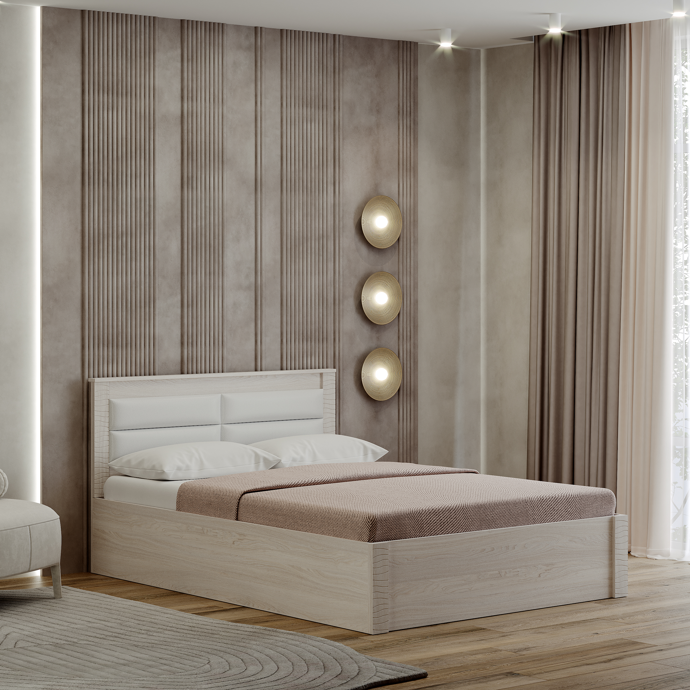 Кровать «Монако» - это современная модель для комфортного сна и отдыха. Элегантные МДФ накладки создают уникальность, не перегружая внешний вид.