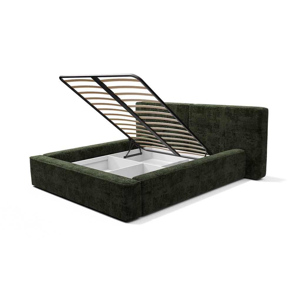 Кровать может комплектоваться ортопедическим основанием с подъемным механизмом, ЛДСП настилом, ДСП проложками или реечным настилом. Любое из этих оснований приобретается отдельно. Место под ортопедическое основание - 1404x2010 мм.