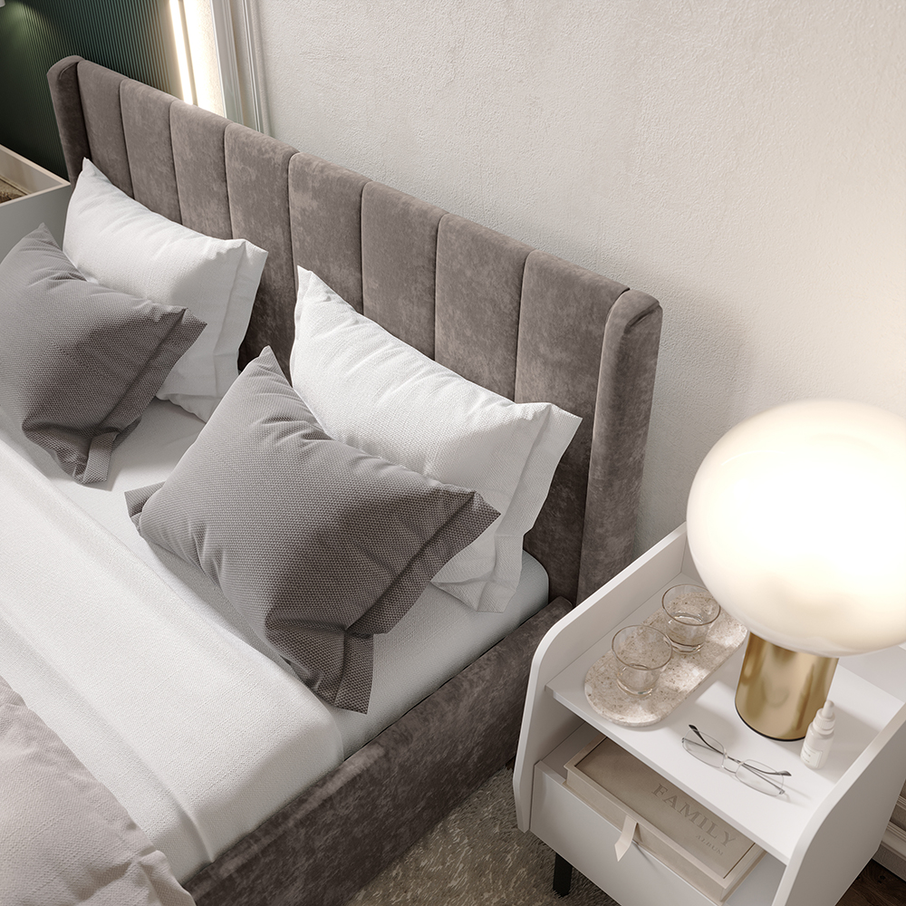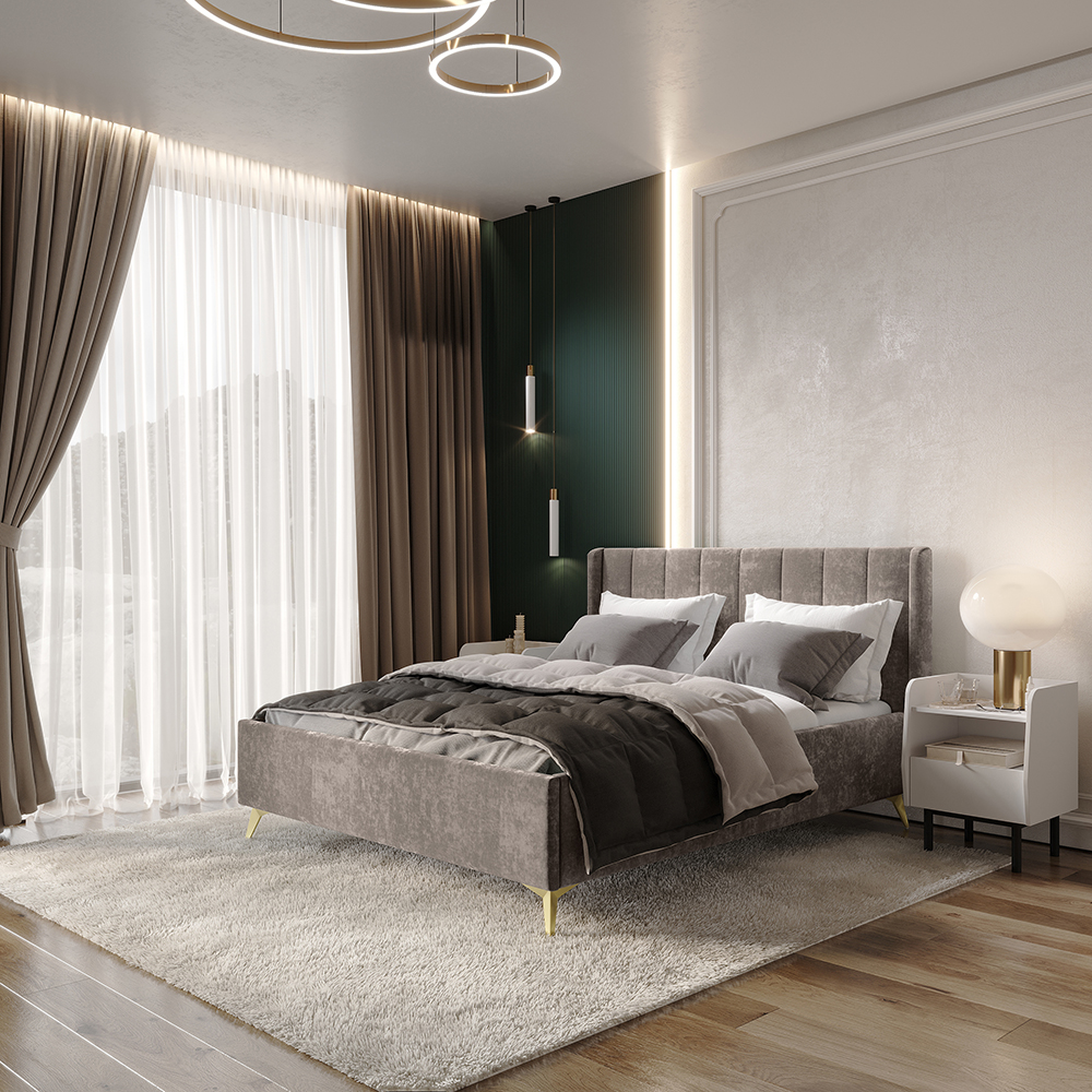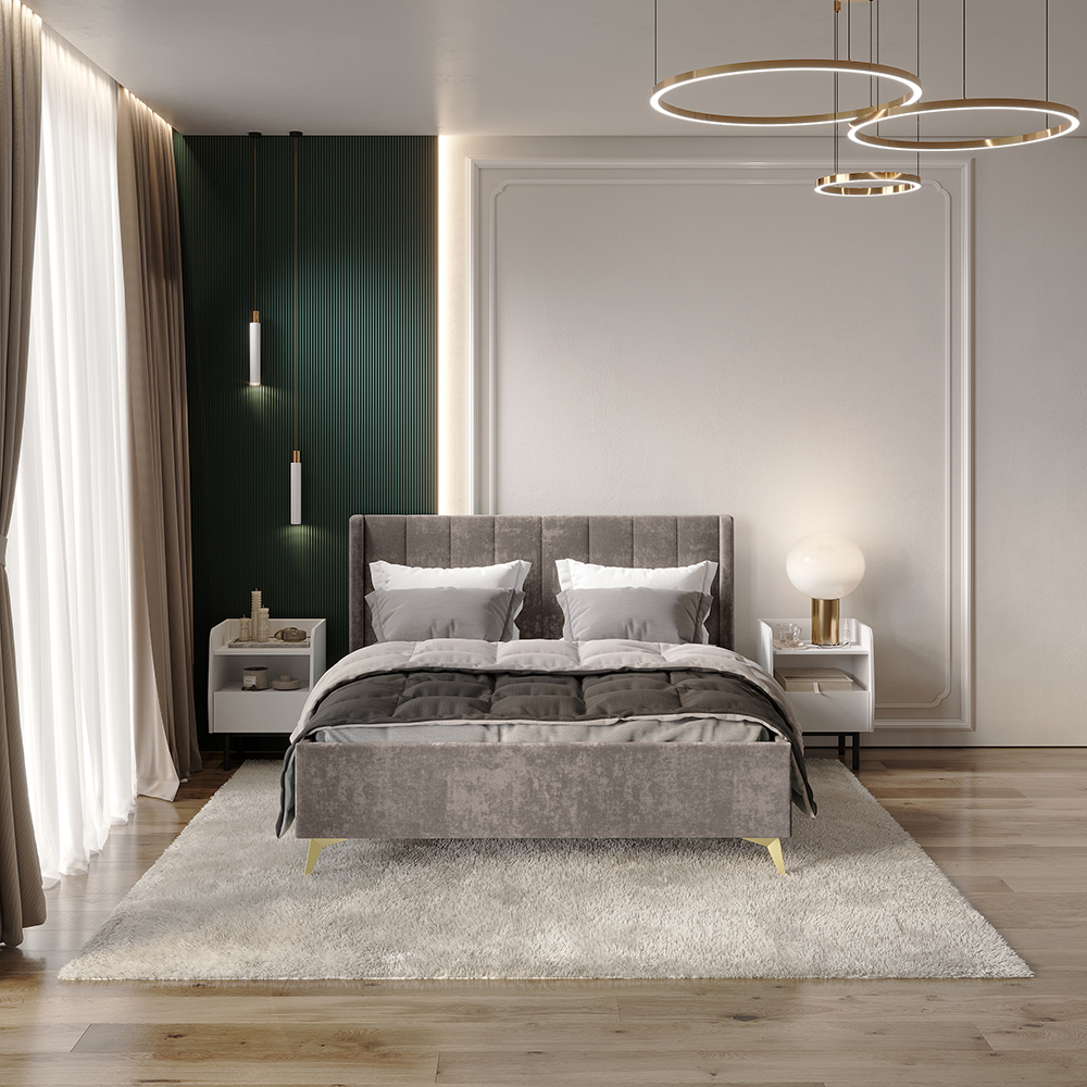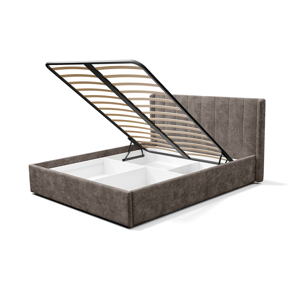 Кровать может комплектоваться ортопедическим основанием с подъемным механизмом, ЛДСП настилом, ДСП проложками или реечным настилом. Также может комплектоваться опорами "звезда" в золотом или черном цвете. Любое из этих оснований и опоры приобретаются отдельно. Место под ортопедическое основание - 1404*2010 мм.