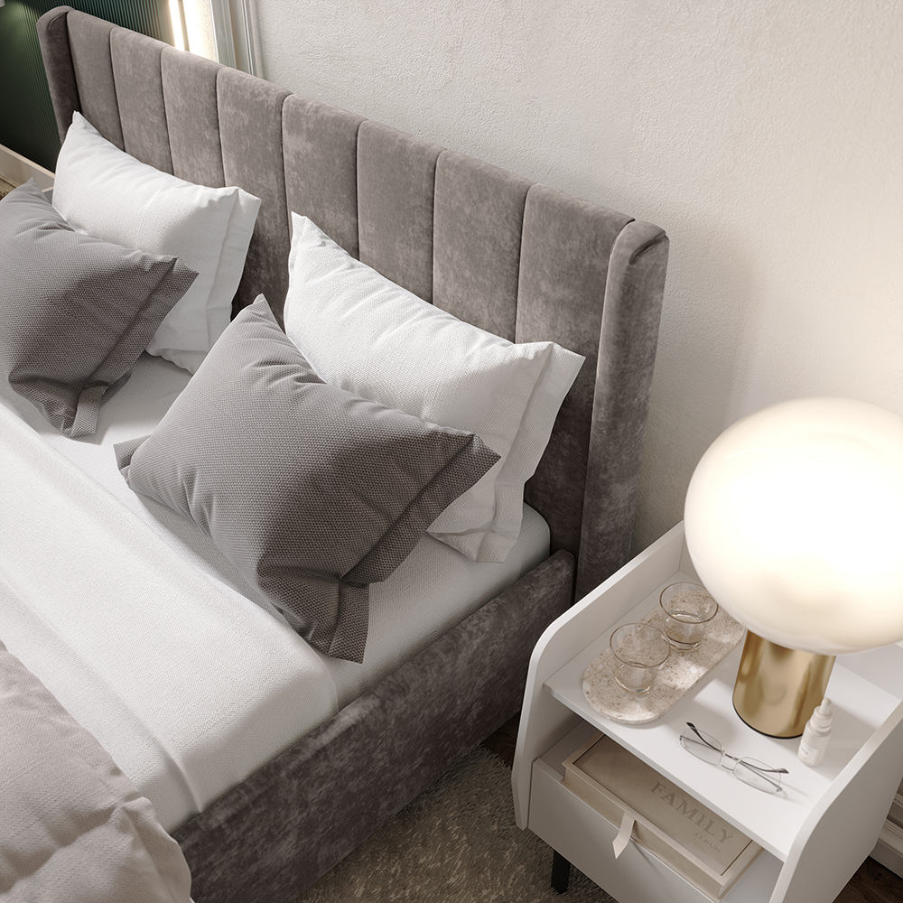 Мягкое изголовье, изножье и царги (поролон 40 мм, 30 мм, 30 мм соответственно).