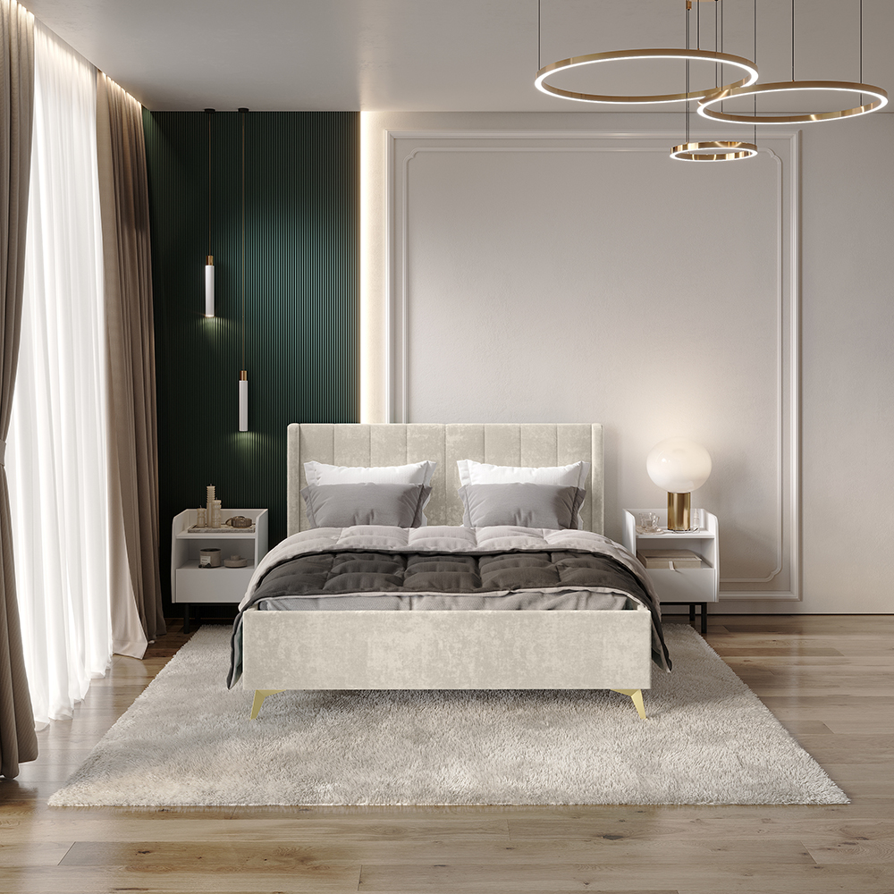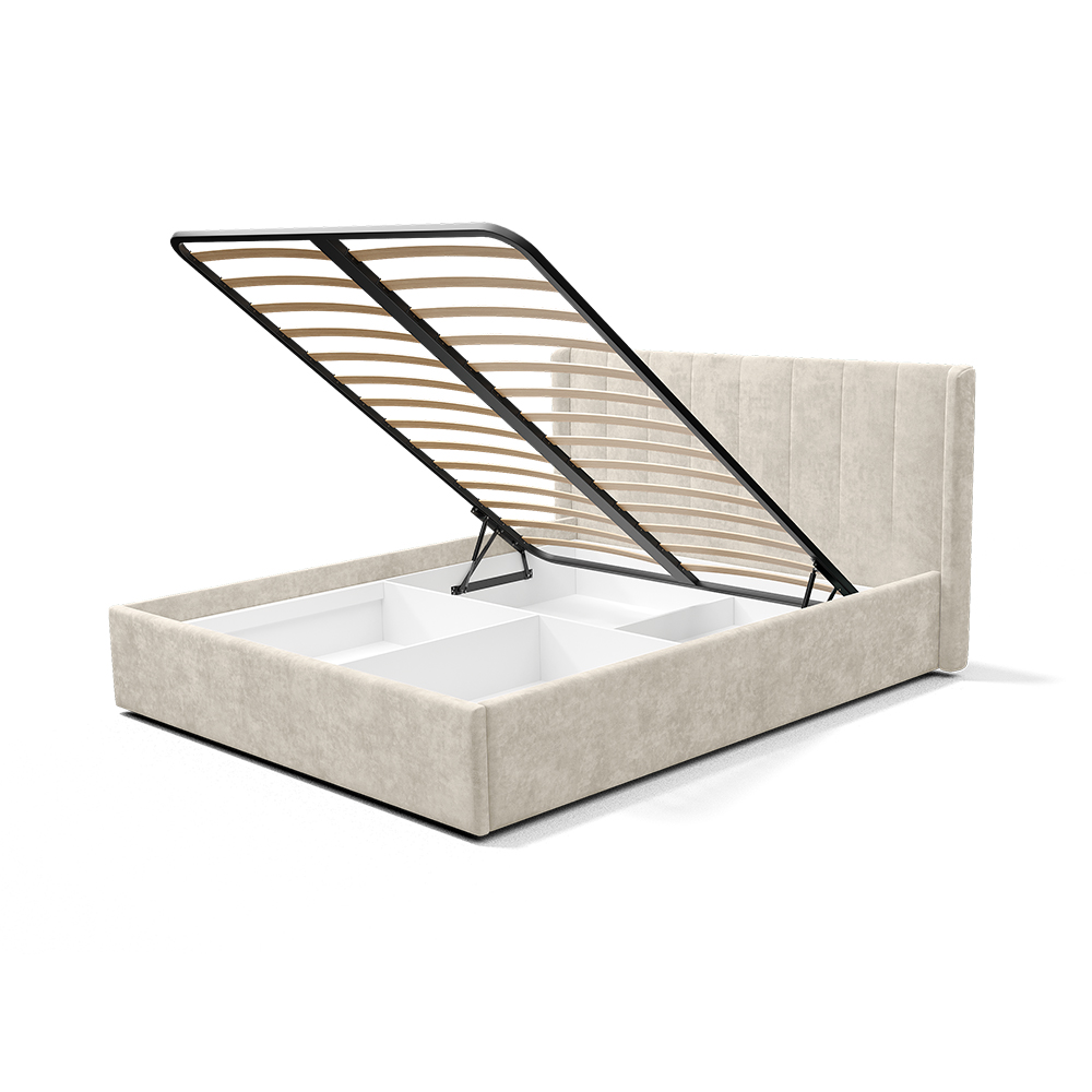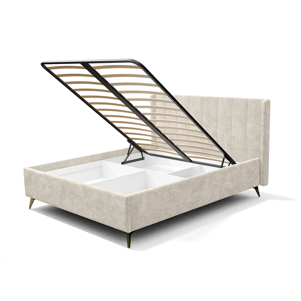Кровать может комплектоваться ортопедическим основанием с подъемным механизмом, ЛДСП настилом, ДСП проложками или реечным настилом. Также может комплектоваться опорами "звезда" в золотом или черном цвете. Любое из этих оснований и опоры приобретаются отдельно. Место под ортопедическое основание - 1404*2010 мм.