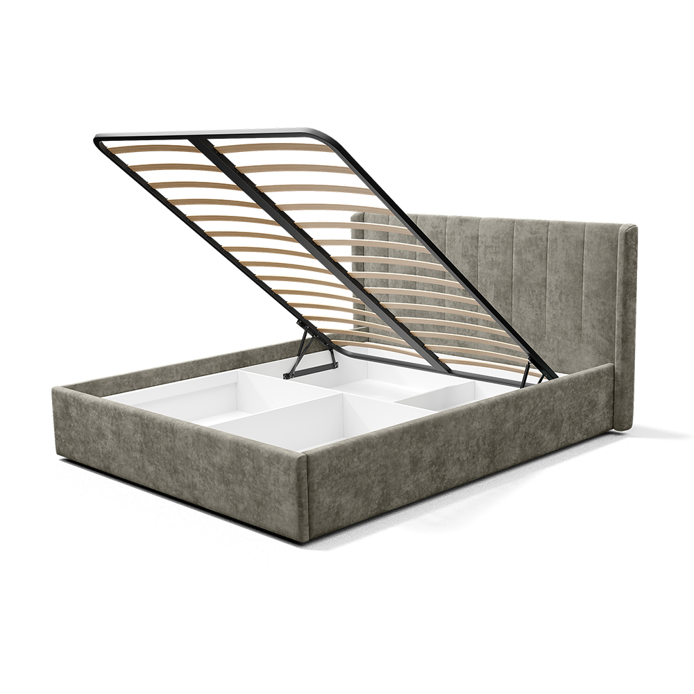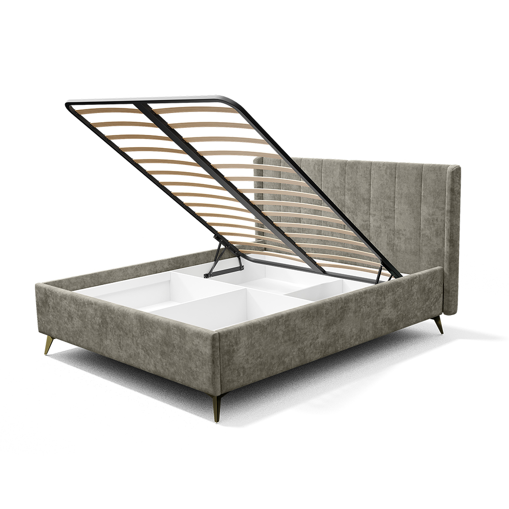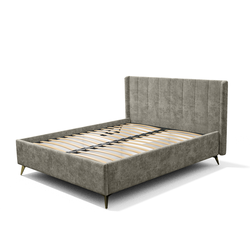 Кровать может комплектоваться ортопедическим основанием с подъемным механизмом, ЛДСП настилом, ДСП проложками или реечным настилом. Также может комплектоваться опорами "звезда" в золотом или черном цвете. Любое из этих оснований и опоры приобретаются отдельно. Место под ортопедическое основание - 1404*2010 мм.