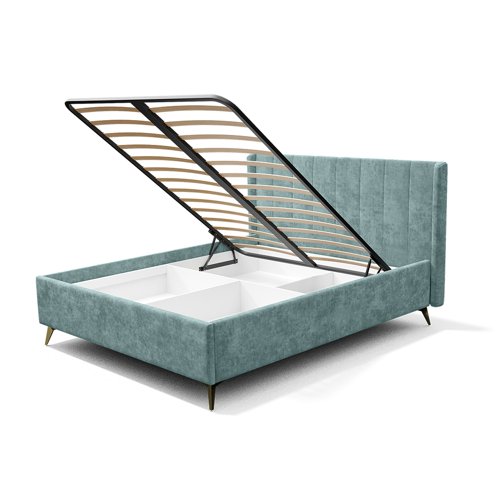 Кровать может комплектоваться ортопедическим основанием с подъемным механизмом, ЛДСП настилом, ДСП проложками или реечным настилом. Также может комплектоваться опорами "звезда" в золотом или черном цвете. Любое из этих оснований и опоры приобретаются отдельно. Место под ортопедическое основание - 1404*2010 мм.