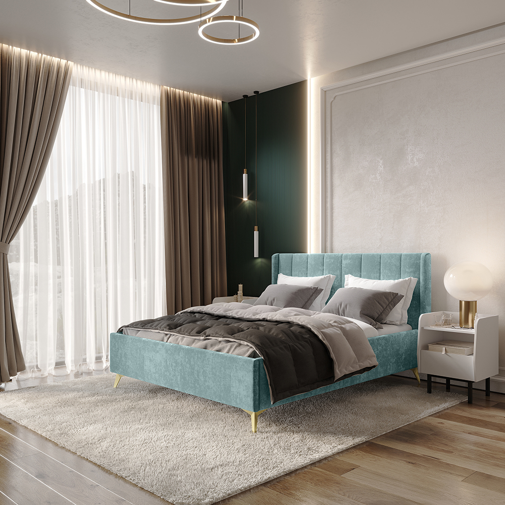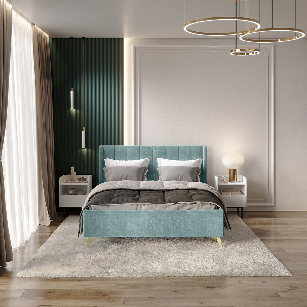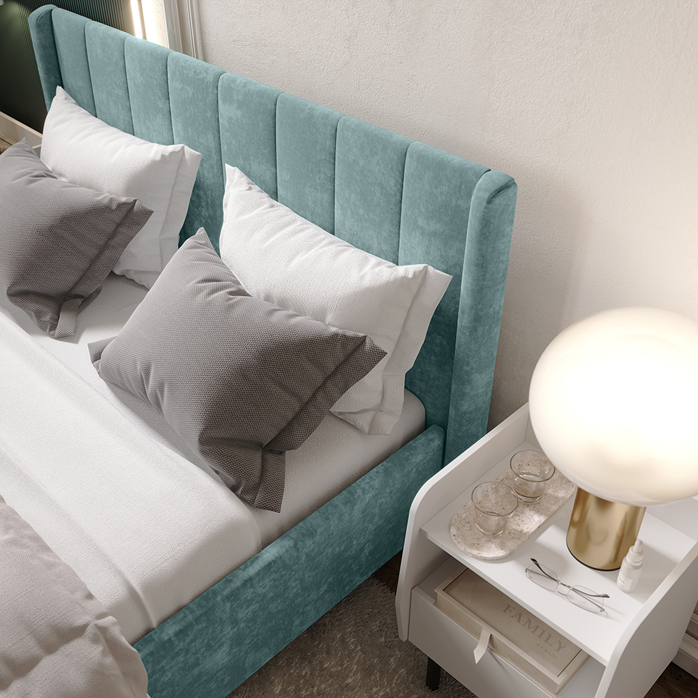 Материал мягких частей - велюр, задняя сторона - спанбонд серый. Декор изголовья - стежка.