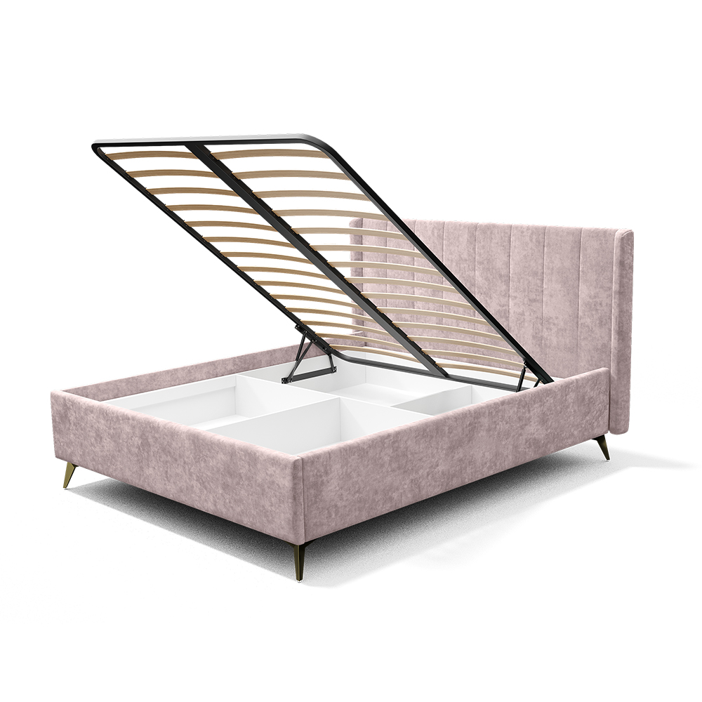 Кровать может комплектоваться ортопедическим основанием с подъемным механизмом, ЛДСП настилом, ДСП проложками или реечным настилом. Также может комплектоваться опорами "звезда" в золотом или черном цвете. Любое из этих оснований и опоры приобретаются отдельно. Место под ортопедическое основание - 1404*2010 мм.