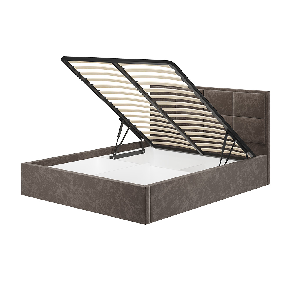 Основание для кровати приобретается отдельно, на выбор: ортопедическое основание с подъёмным механизмом 1,6 м, настил ЛДСП 1,6 м (1600x380 мм) с кромкой – 5 шт, проложки ДСП 1,6 м (1600x420мм) – 4 шт или реечный настил 1,6 м.