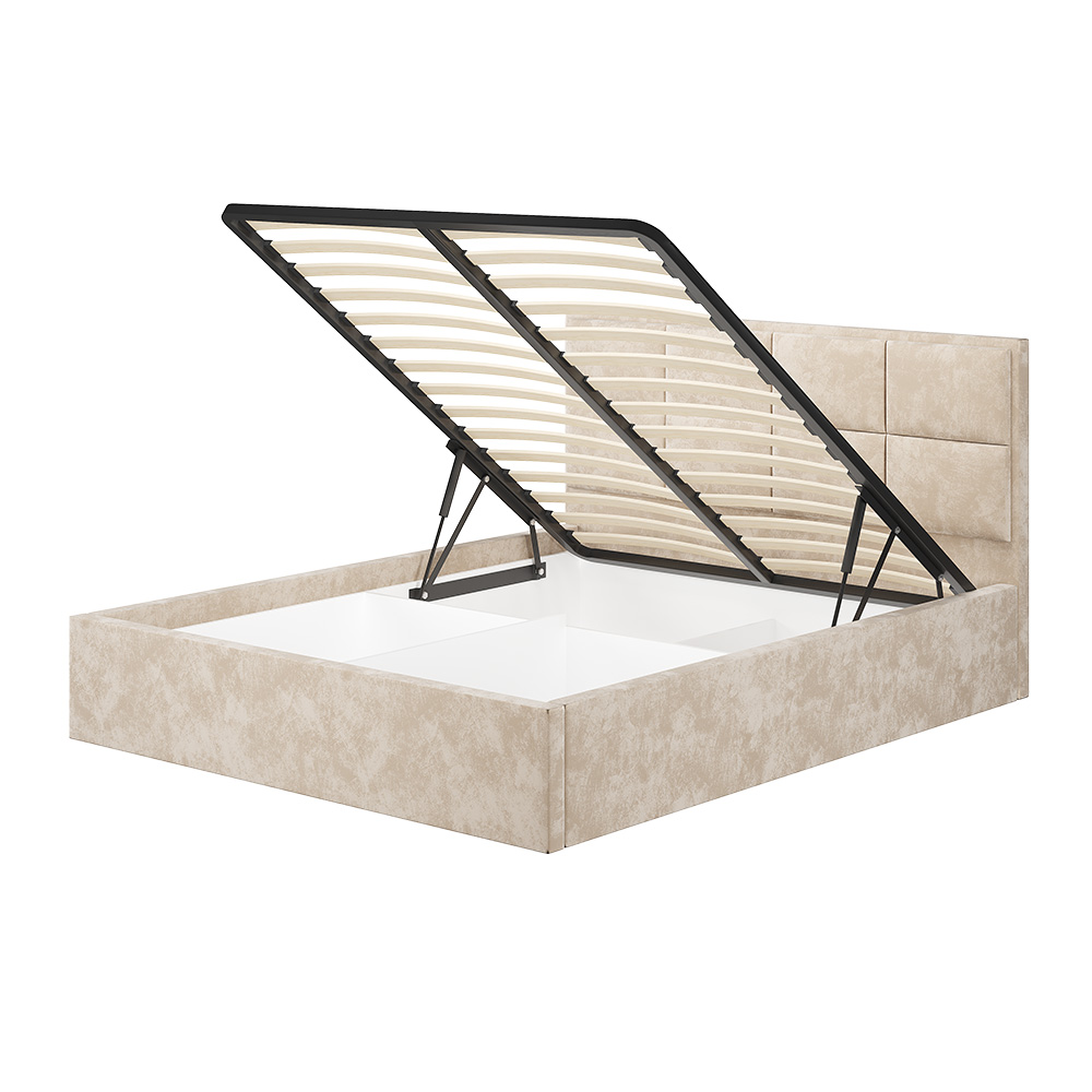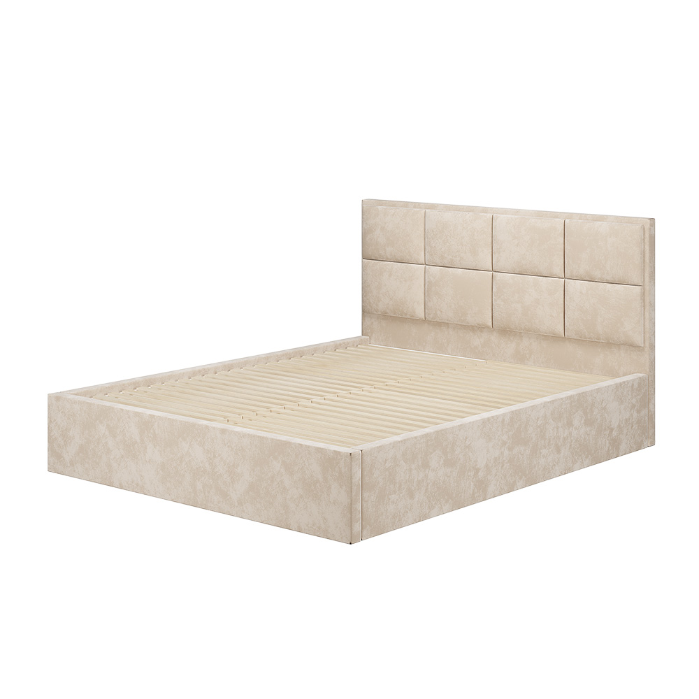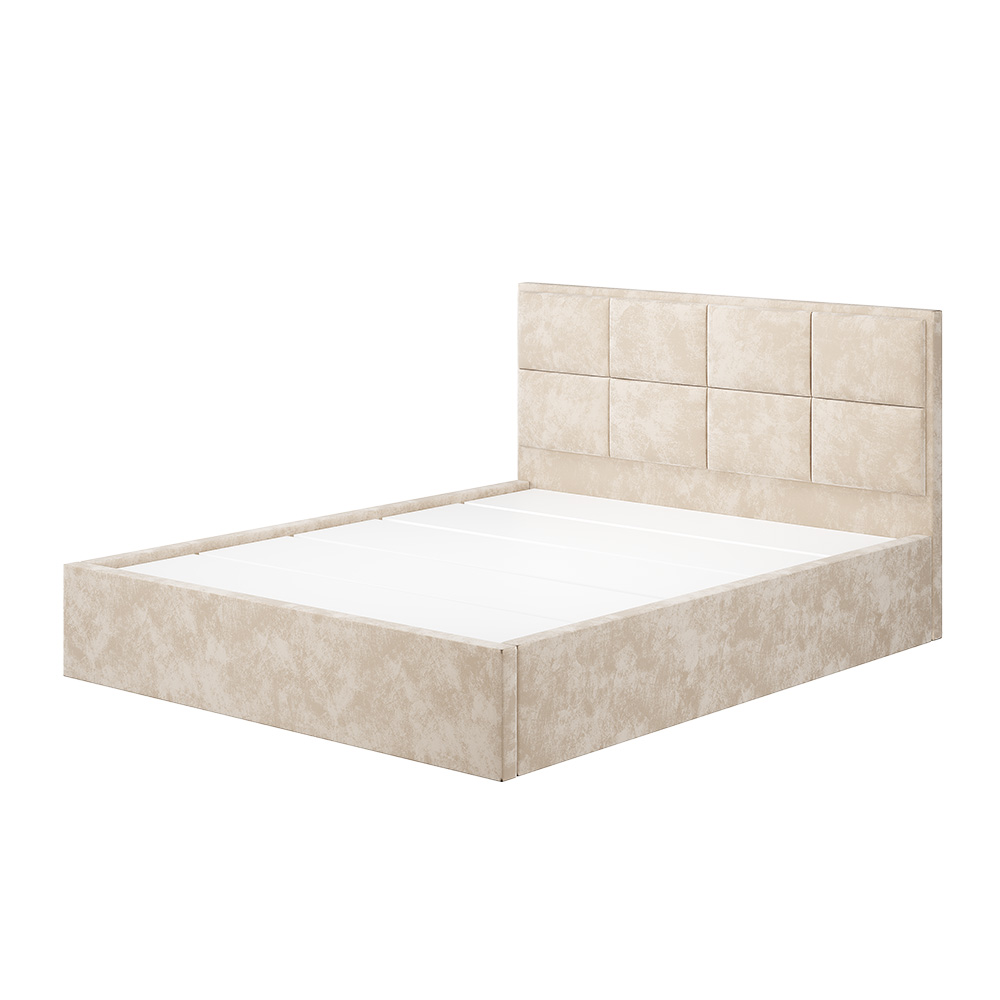 Основание для кровати приобретается отдельно, на выбор: ортопедическое основание с подъёмным механизмом 1,6 м, настил ЛДСП 1,6 м (1600x380 мм) с кромкой – 5 шт, проложки ДСП 1,6 м (1600x420мм) – 4 шт или реечный настил 1,6 м. Короб для размещения белья предусмотрен в комплектации кровати.