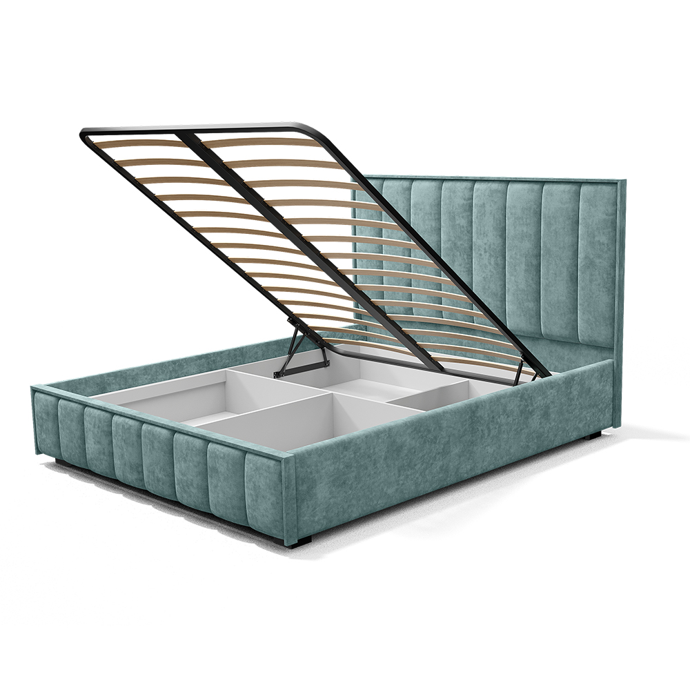 Широкое спальное место - 1600x2000 мм. Кровать производится под подъемный механизм, приобретаемый отдельно. Место под ортопедическое основание - 1610*2028 мм.