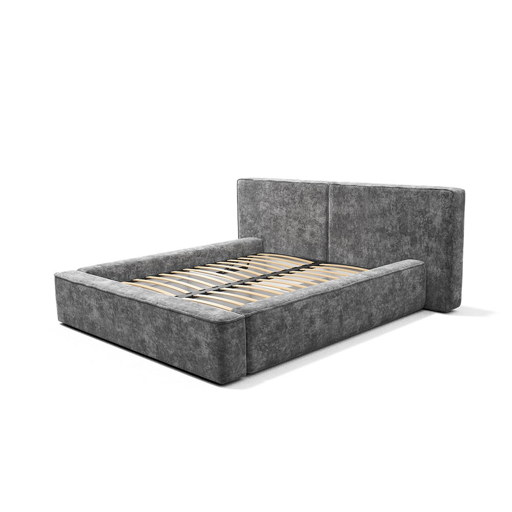 Материал мягких частей - велюр, искусственная замша. Декор изголовья и изножья - элегантный кант.