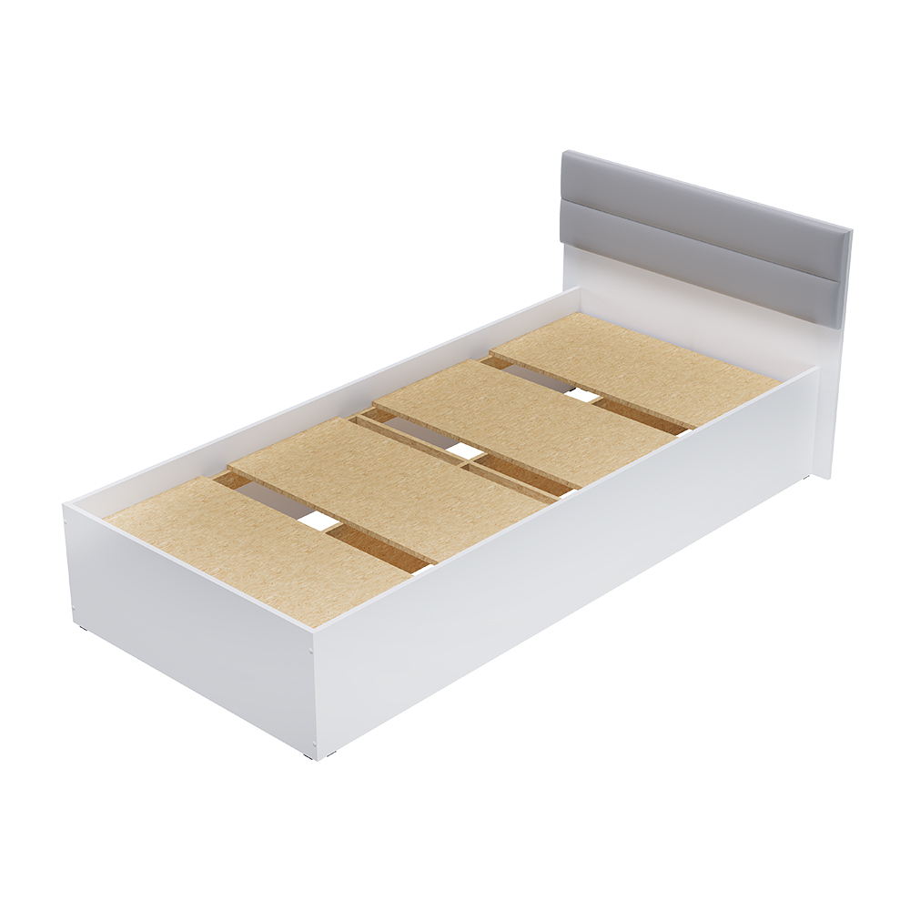 Данная модель кровати "Фьюжн" выпускается на фабрике без основания. Основание приобретается дополнительно (отдельно от кровати). На выбор: проложки ДСП, настил ЛДСП с кромкой либо настил реечный.