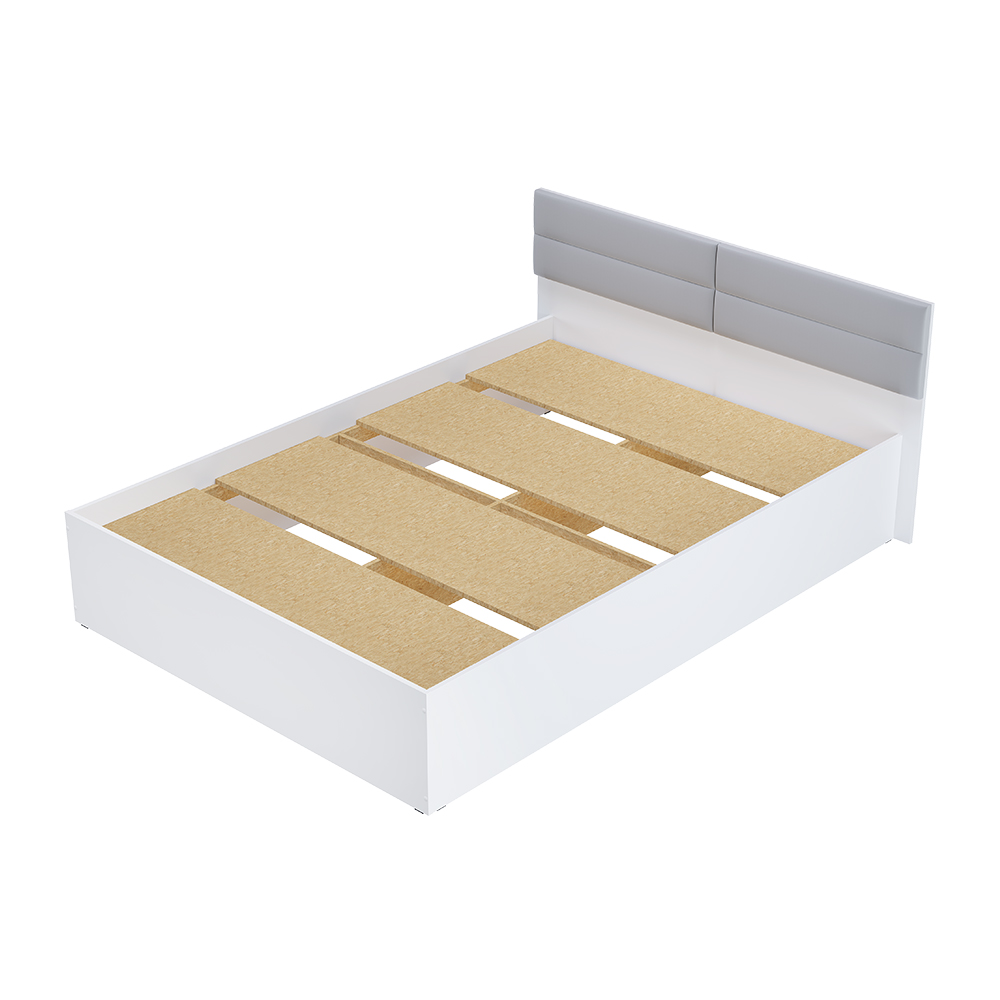 Данная модель кровати "Фьюжн" выпускается на фабрике без основания. Основание приобретается дополнительно (отдельно от кровати). На выбор: проложки ДСП, настил ЛДСП с кромкой, настил реечный либо ортопедическое основание с подъемным механизмом.
