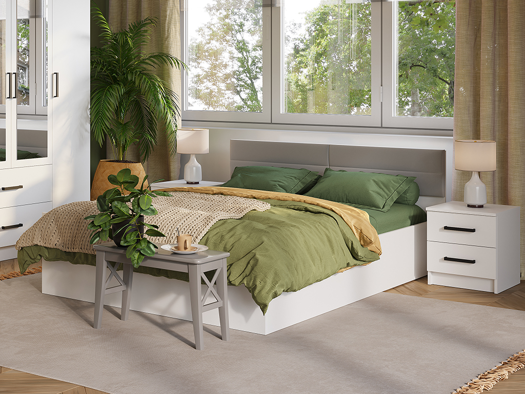 Широкая кровать в минималистичном стиле «Фьюжн» КР-13 – это модель для ценителей простого и понятного функционала. Мягкое изголовье из ткани велюр цвета "графит" добавляет комфорта спальному месту.