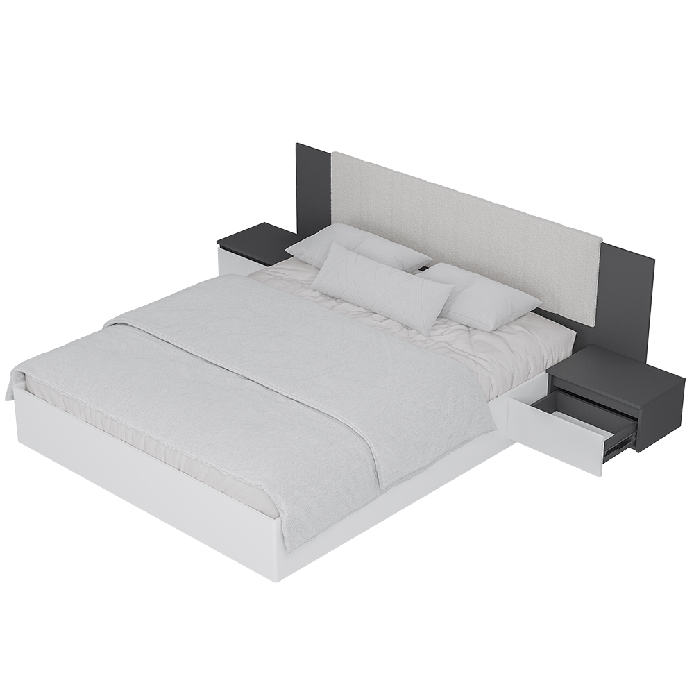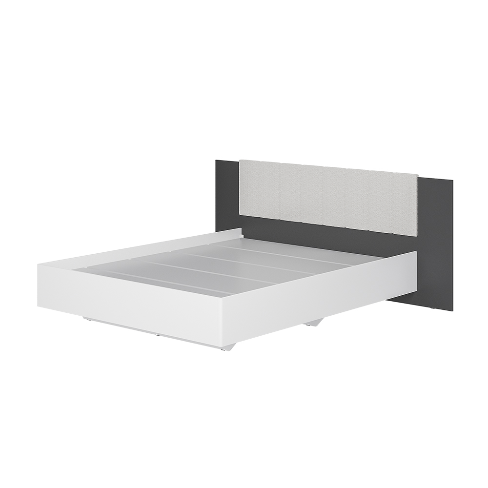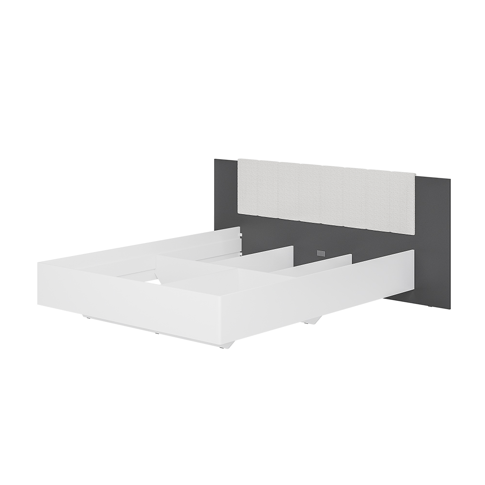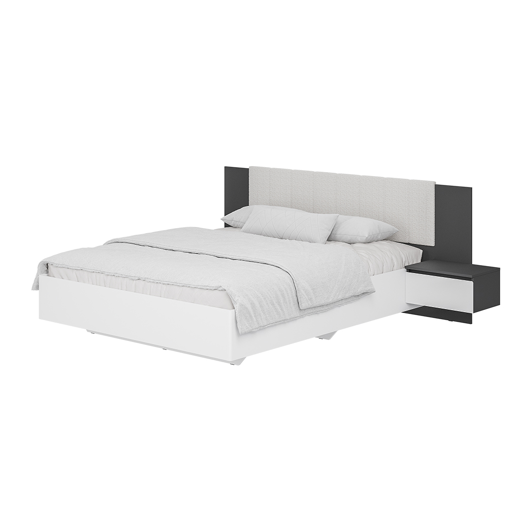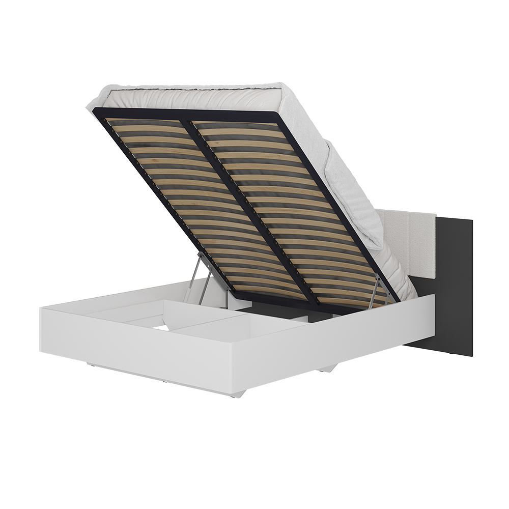 Коллекция "Шарм" - современная классика в контрастном исполнении "белый/графит". Кровать с парящим эффектом в трендовой ткани "барашек" - сердце коллекции. Настил, проложки и ортопедическое основание с подъемным механизмом приобретаются отдельно.