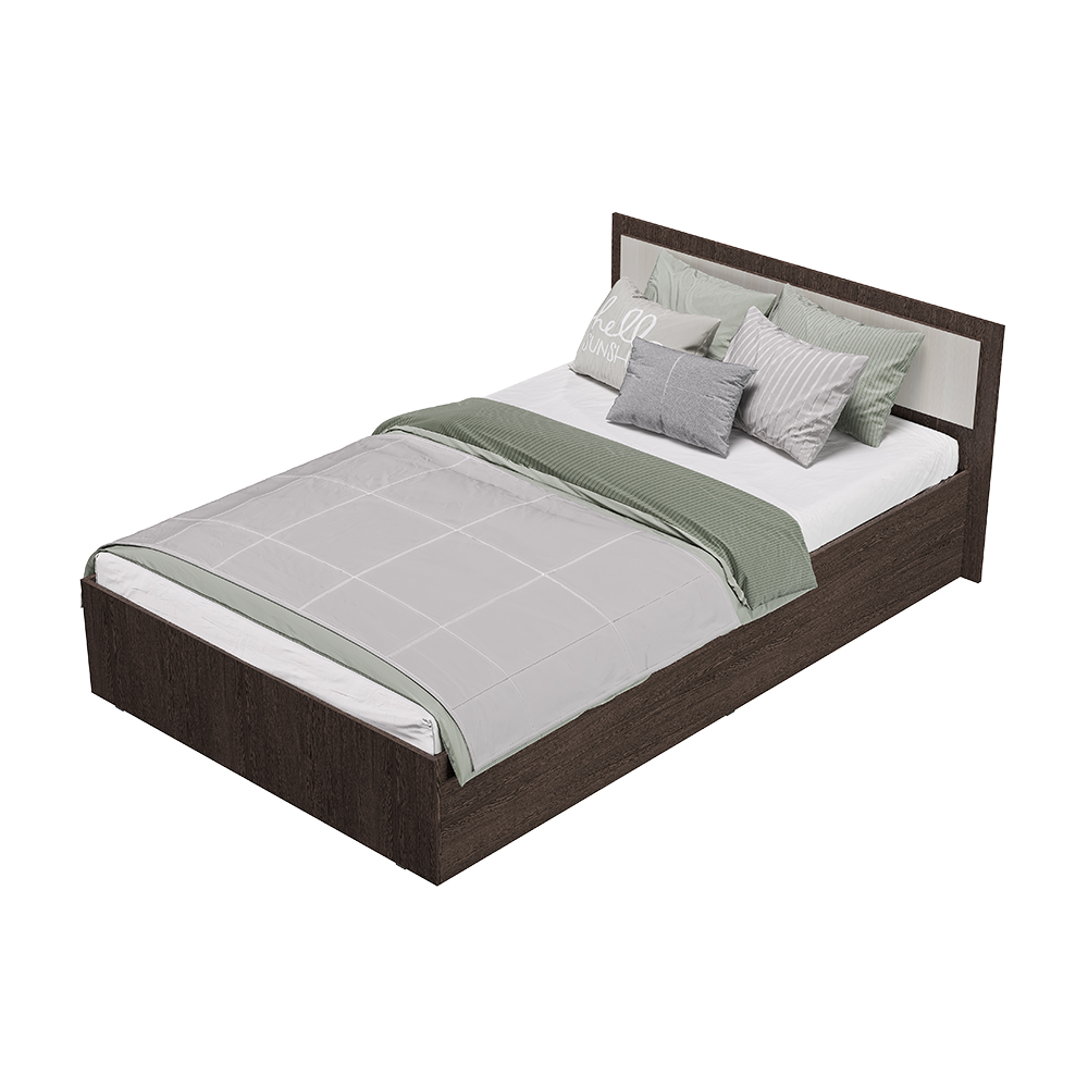 Кровать "Фиеста" выполнена из высококачественной ЛДСП в цвете "венге". Изголовье имеет вставку цвета "лоредо". У кровати отсутствуют ножки, это избавит вас от скопления пыли под ней. Основание приобретается отдельно - проложки ДСП 1,2 - размер 1200х420 мм в комплекте 4 шт, настил ЛДСП 1,2 (с кромкой) - размер 1200х380 мм в комплекте 5 шт, настил реечный 1,2.