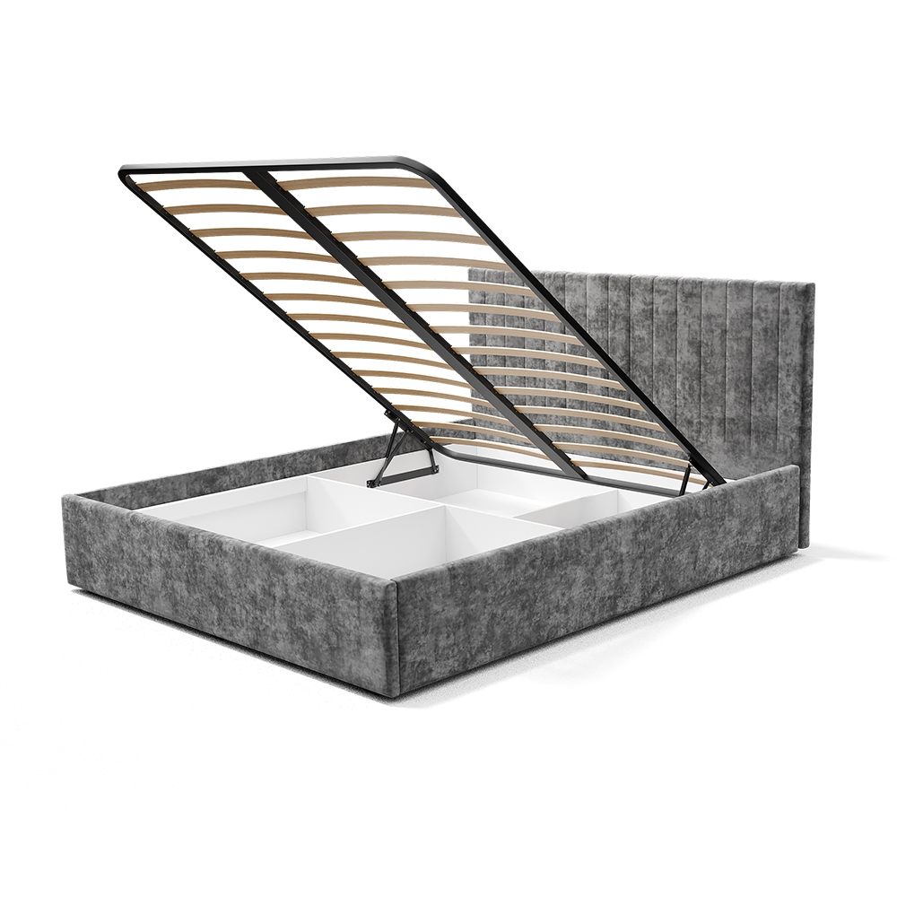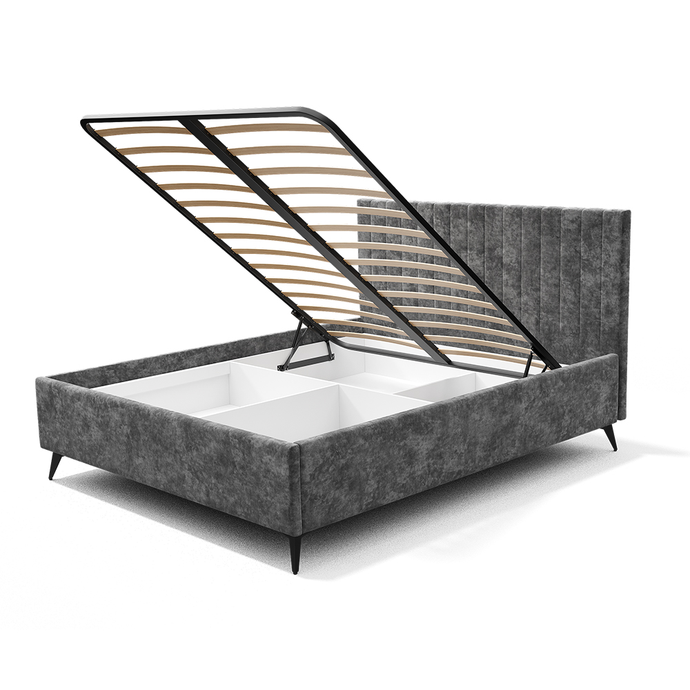 Кровать может комплектоваться ортопедическим основанием с подъемным механизмом, ЛДСП настилом, ДСП проложками или реечным настилом. Также может комплектоваться опорами "звезда" в золотом или черном цвете. Любое из этих оснований и опоры приобретаются отдельно. Место под ортопедическое основание - 1604*2010 мм.