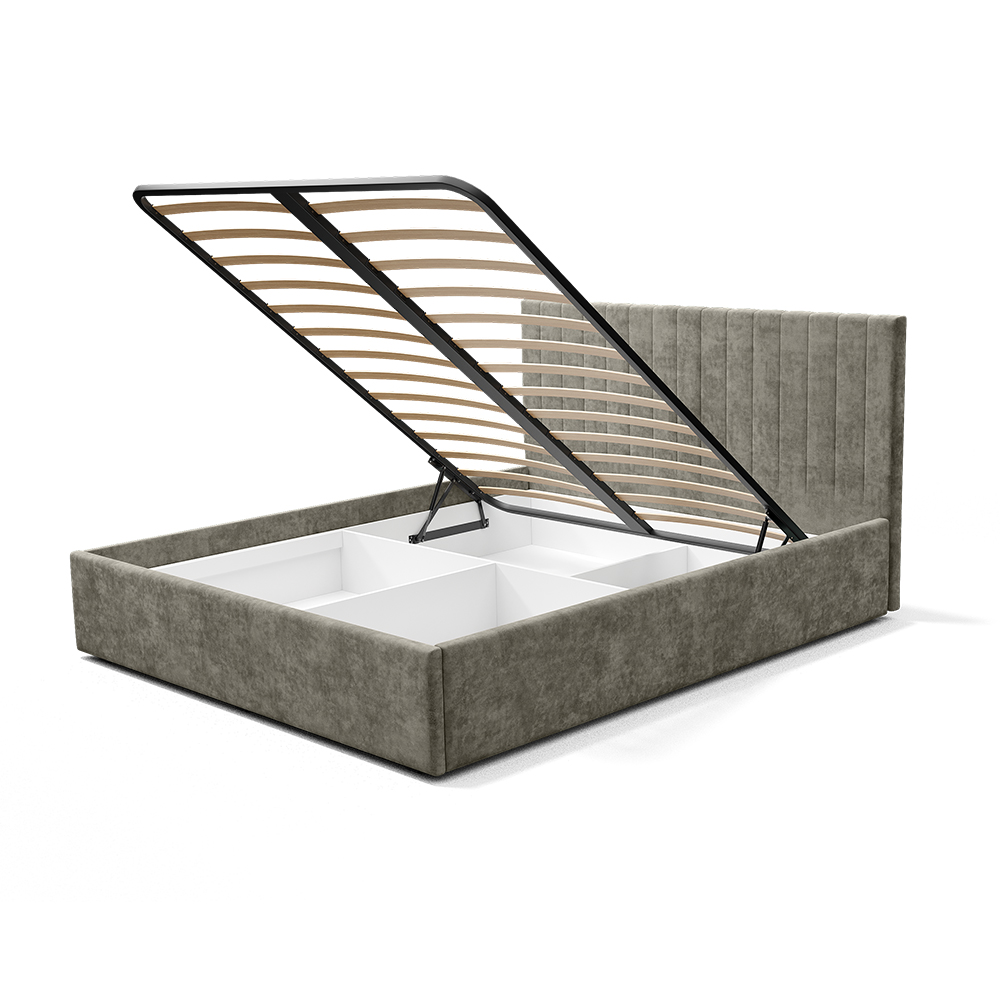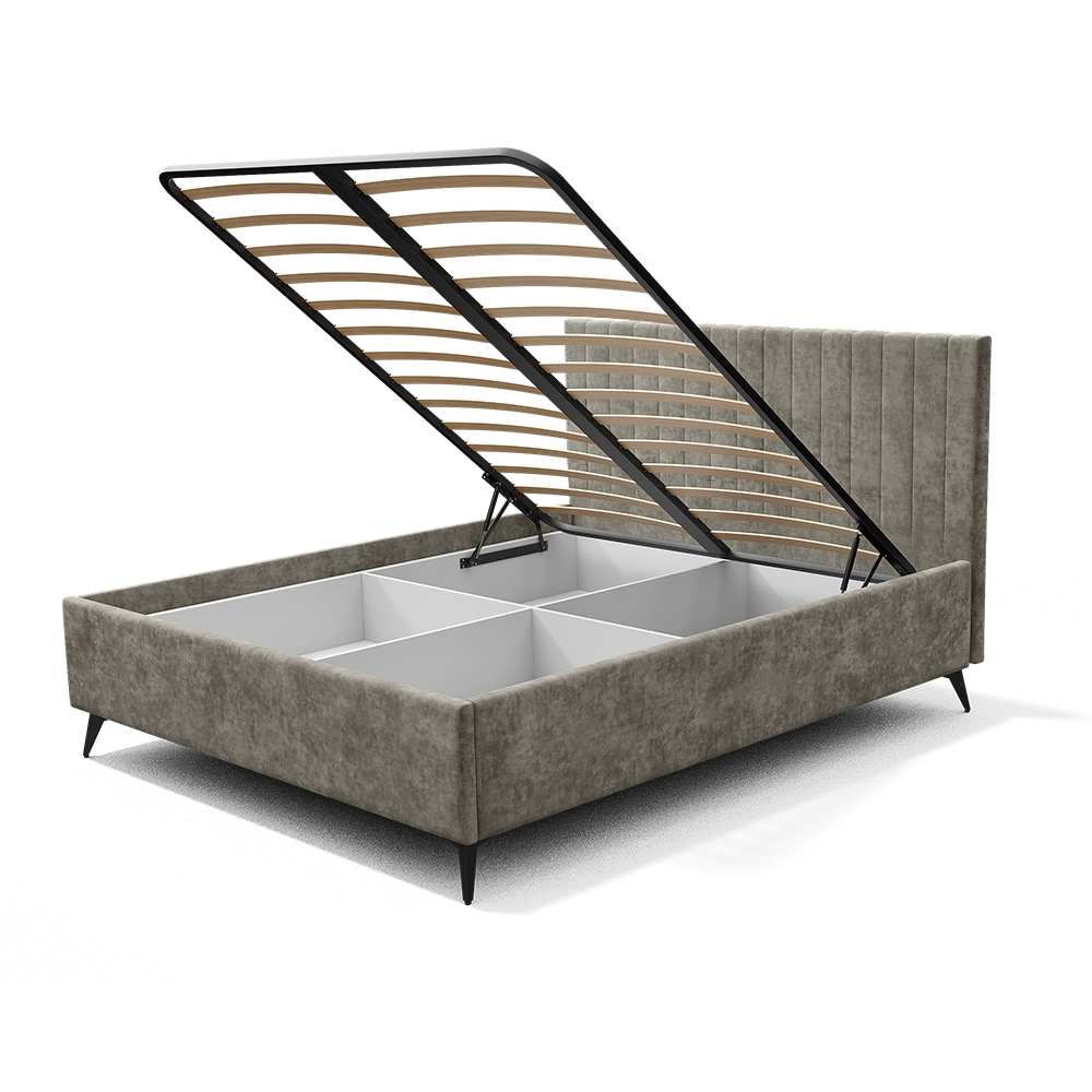 Широкое спальное место 1600*2000 мм. Кровать может комплектоваться ортопедическим основанием с подъемным механизмом, ЛДСП настилом, ДСП проложками или реечным настилом. Также может комплектоваться опорами "звезда" в золотом или черном цвете. Любое из этих оснований и опоры приобретаются отдельно. Место под ортопедическое основание - 1604*2010 мм.