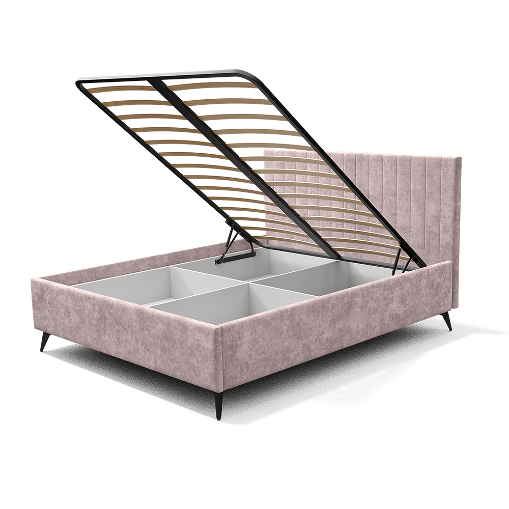 Широкое спальное место 1600*2000 мм. Кровать может комплектоваться ортопедическим основанием с подъемным механизмом, ЛДСП настилом, ДСП проложками или реечным настилом. Также может комплектоваться опорами "звезда" в золотом или черном цвете. Любое из этих оснований и опоры приобретаются отдельно. Место под ортопедическое основание - 1604*2010 мм.