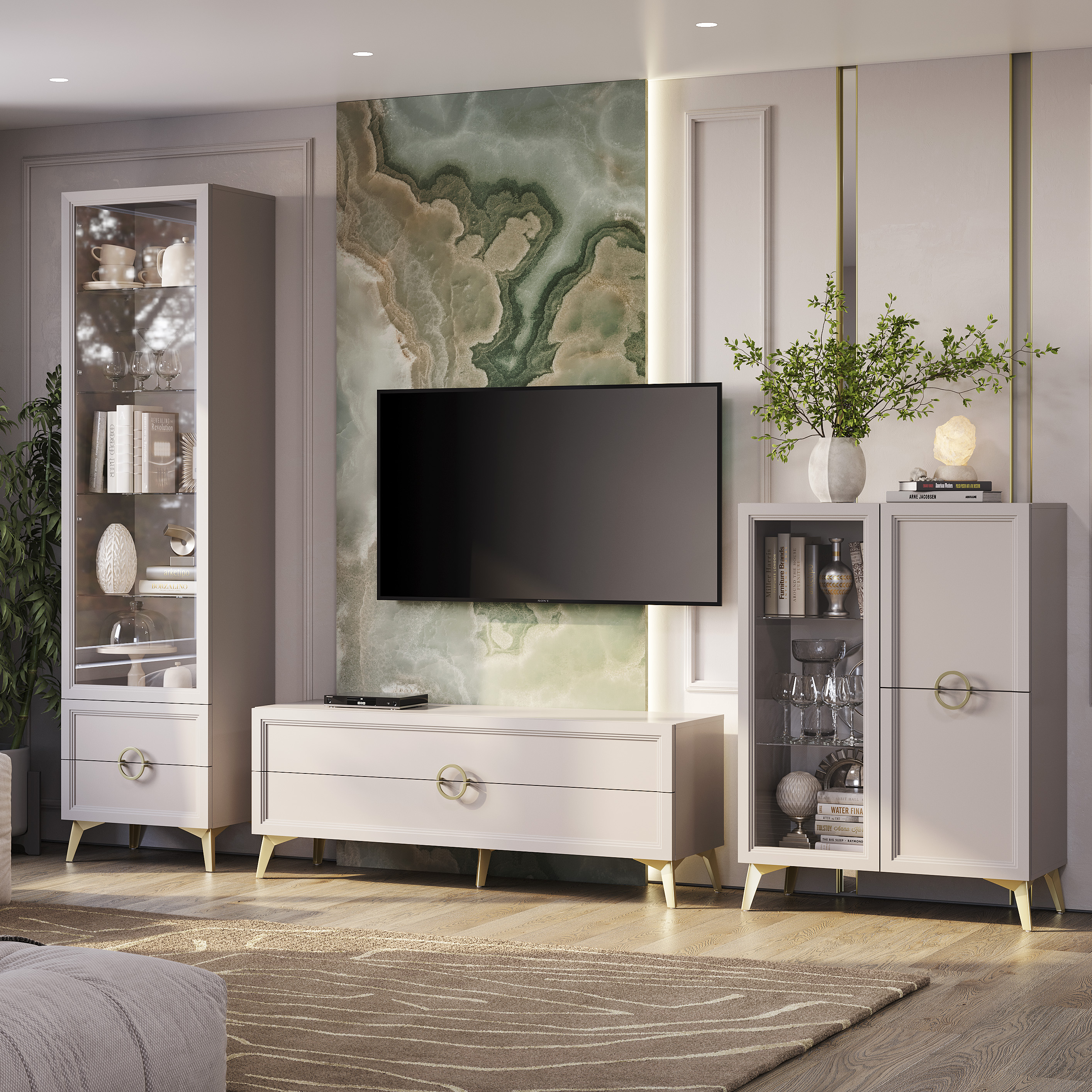 Благородная фактура – уникальные рамочные МДФ-фасады с рельефной фрезеровкой. Фурнитура скрытого монтажа – безупречный вид без видимых креплений.