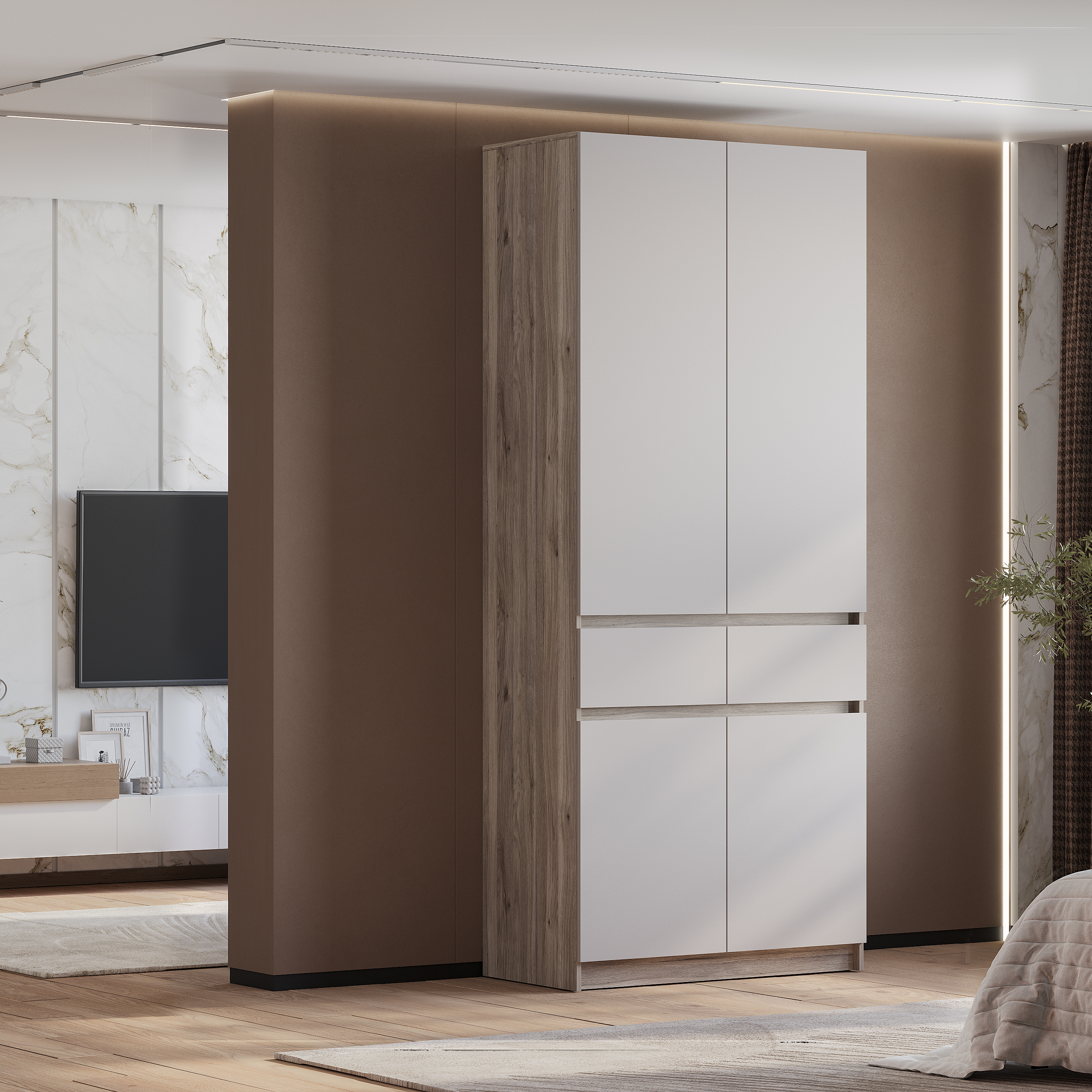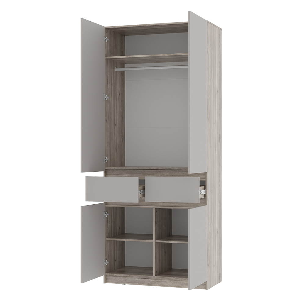 Шкаф 2-х створчатый "Багира" ШК-03 - это стиль и эргономичная конструкция. Хромированная штанга для аккуратного вертикального хранения одежды.