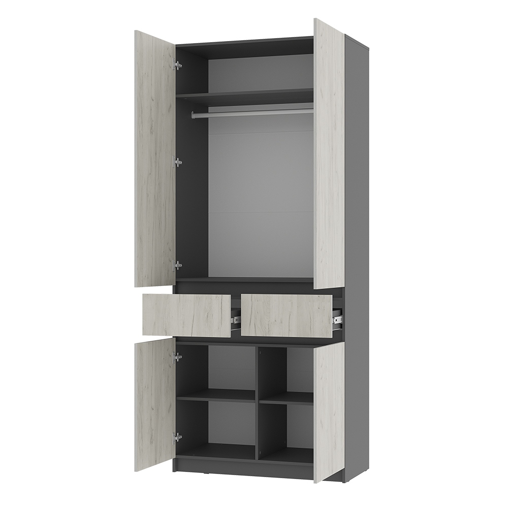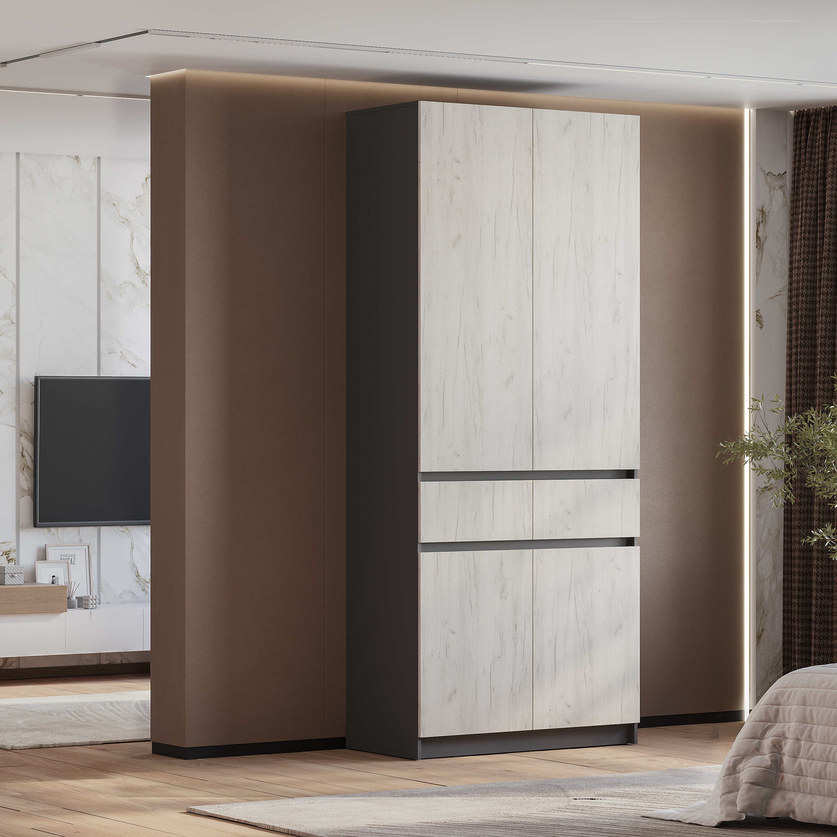 Шкаф 2-х створчатый "Багира" ШК-03 - это стиль и эргономичная конструкция. Хромированная штанга для аккуратного вертикального хранения одежды.