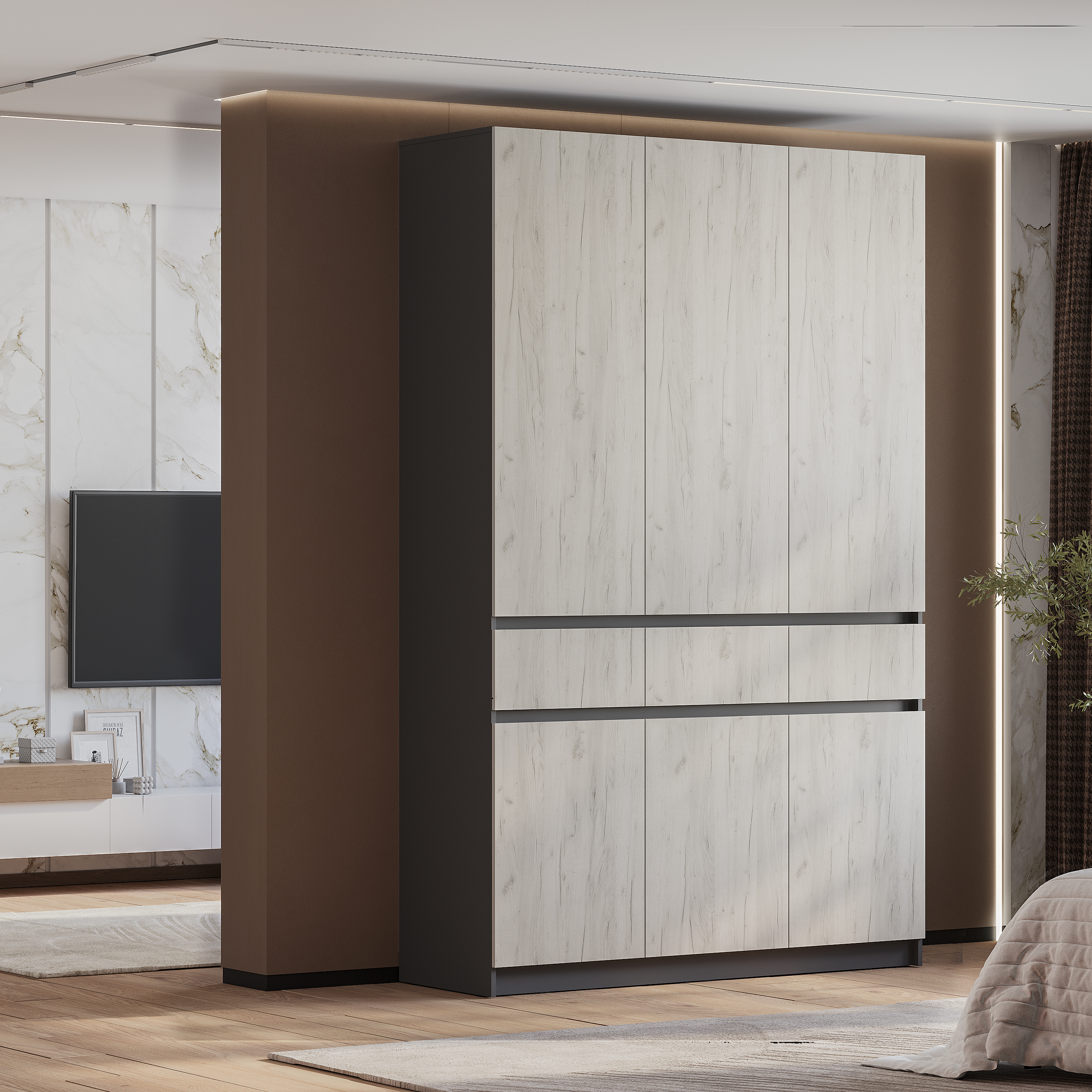 Шкаф 3-х створчатый "Багира" ШК-08 - это эстетичный дизайн и эргономичная конструкция. Хромированная штанга для аккуратного вертикального хранения одежды.