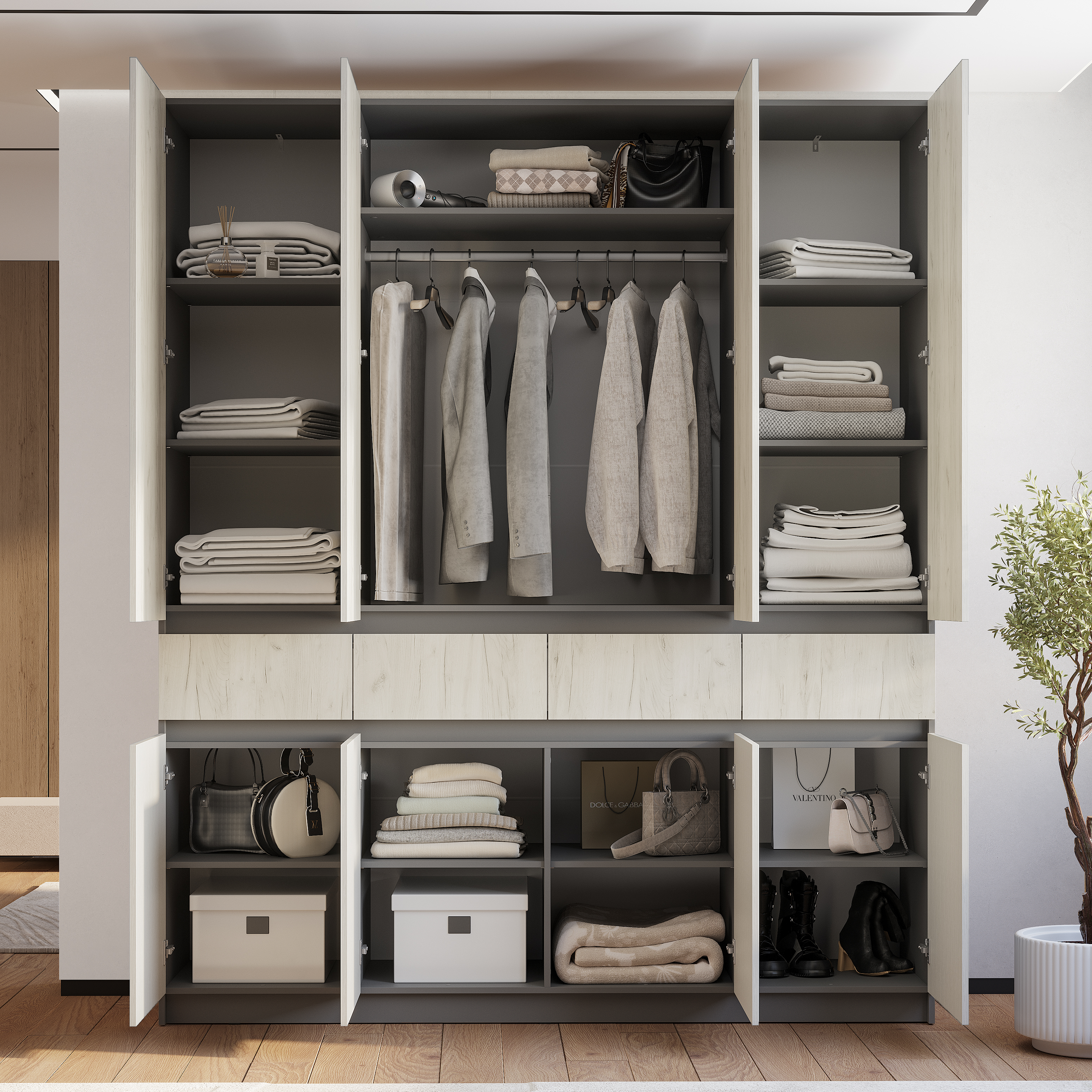 Шкаф 4-х створчатый "Багира" ШК-13 - это стиль, универсальность и вместительность. Хромированная штанга для аккуратного вертикального хранения одежды.