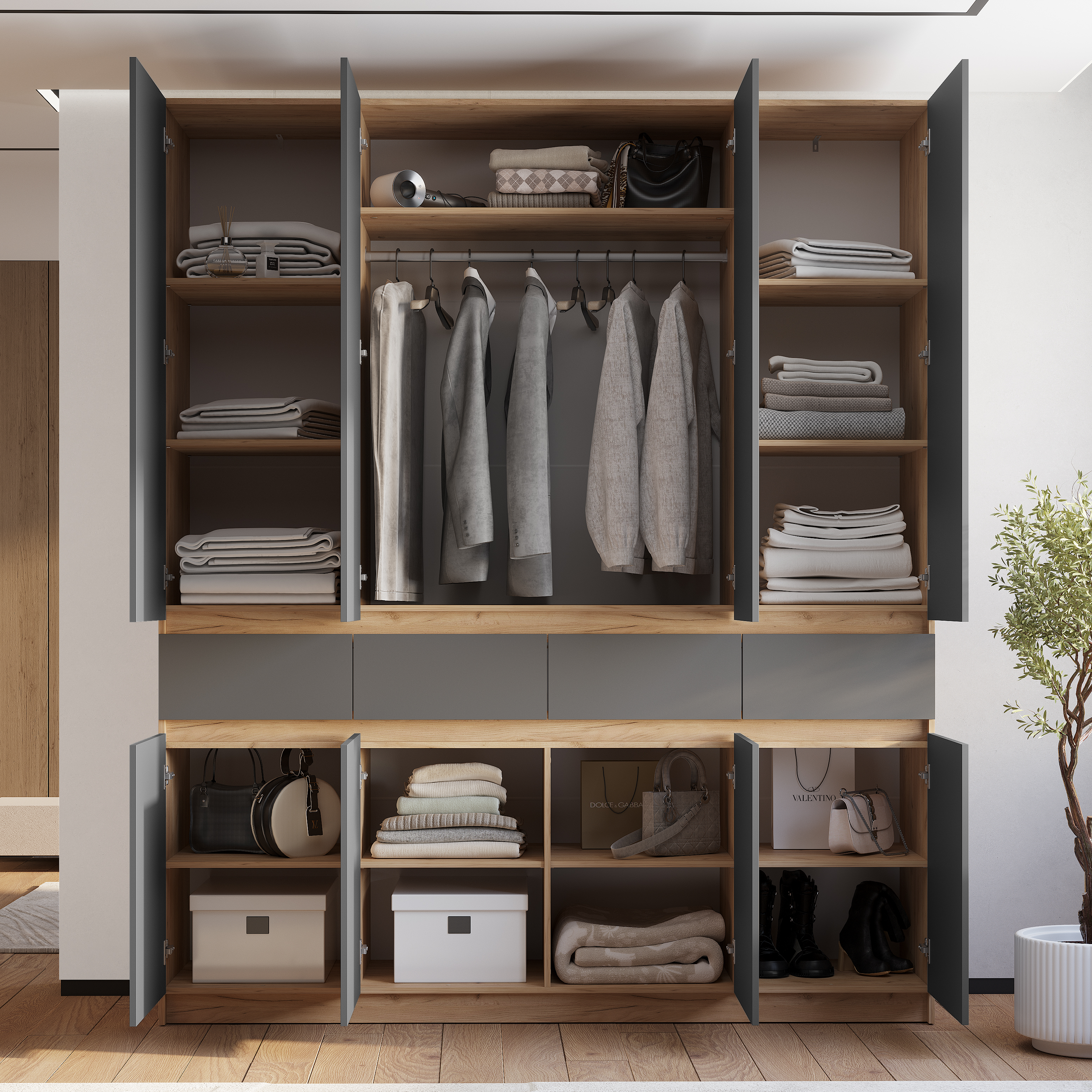 Шкаф 4-х створчатый Багира ШК-13 крафт/графит