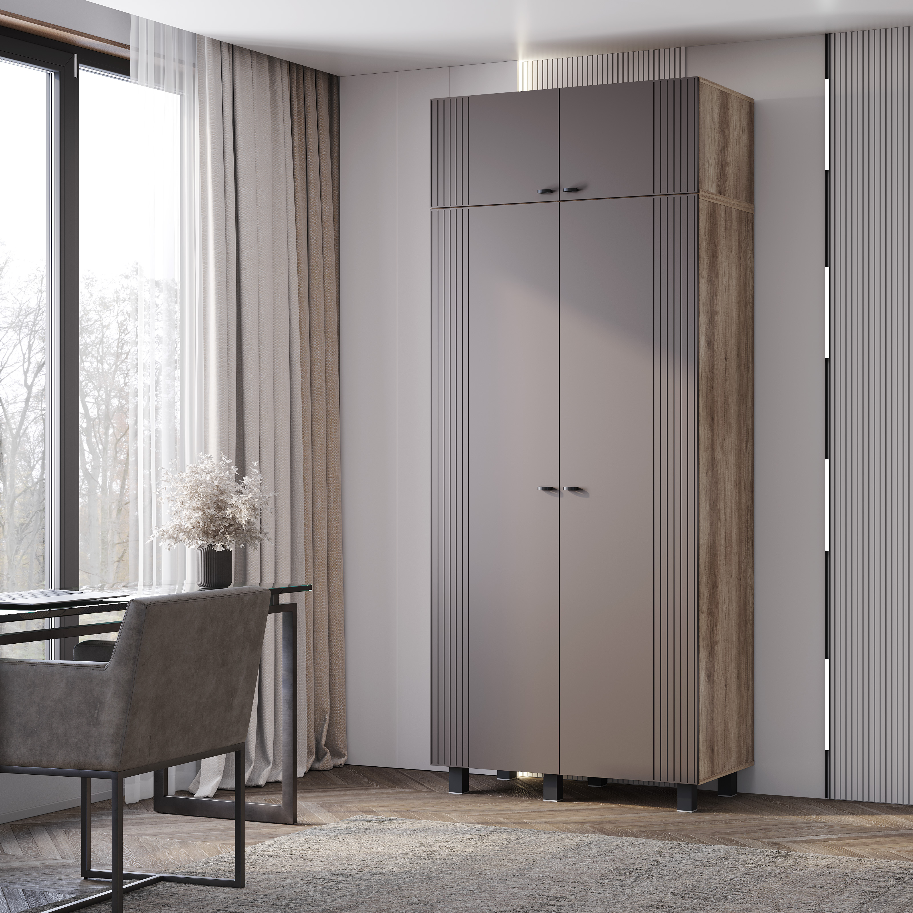Шкаф навесной Олива ШКН-02 можно использовать как антресоль к 2-х створчатым шкафам Олива ШК-03, как подвесную полку или как напольную тумбу. Элегантная фрезеровка – продолжение индивидуальности коллекции. Простая и функциональная конструкция.
