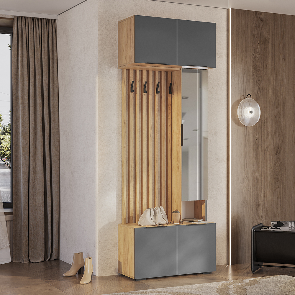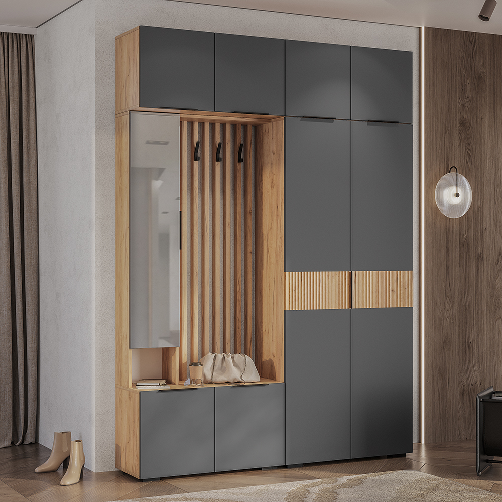 ШКН-02 может использоваться как самостоятельная модель и как надстройка для шкафа ШК-04 либо для прихожей ПР-03.